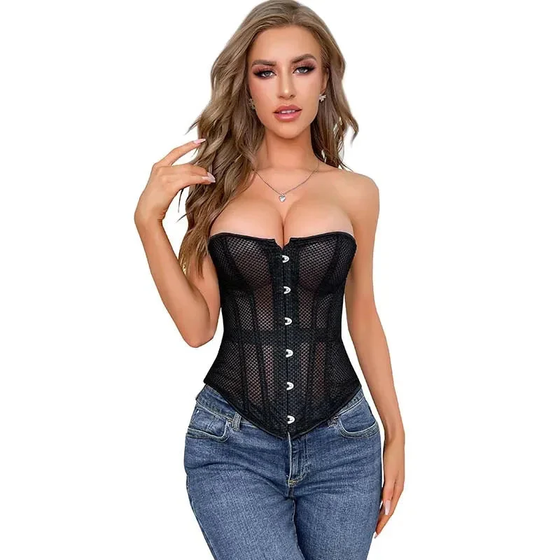 Translucent Gothic Bustier Crop Top Plus Size S-6Xl Burlesque Vintage Lingerie - M