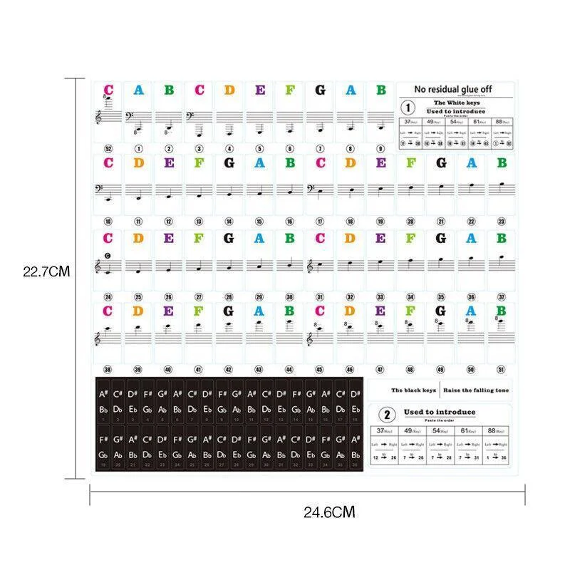 Includes 88 stickers: 52 for white keys and 36 for black keys