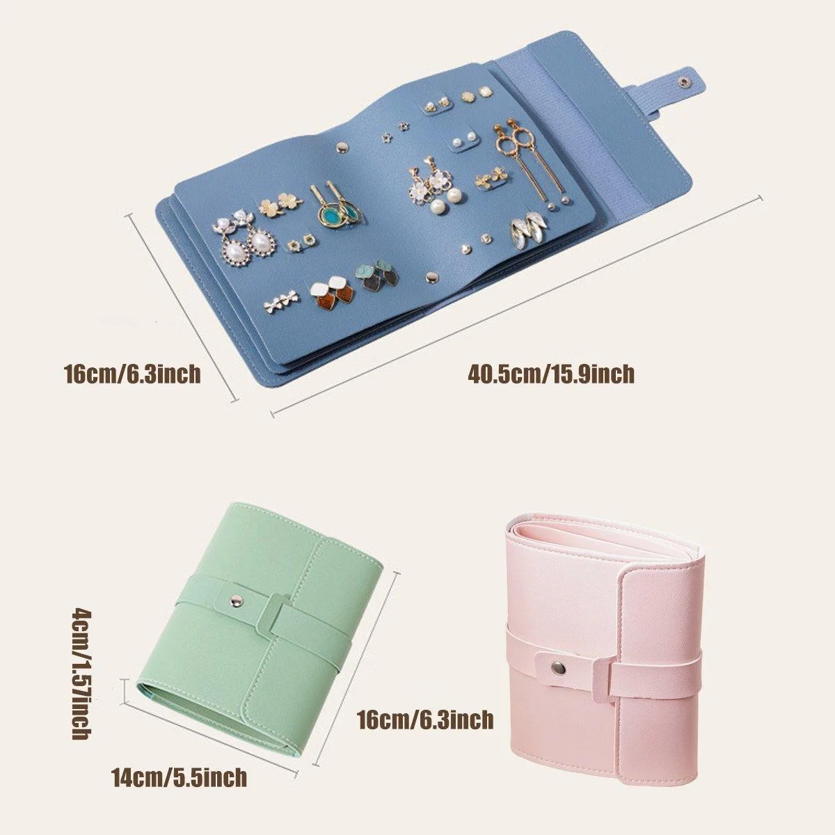 This compact and portable jewellery storage bag is ideal for both travel and daily use. Designed to protect your accessories, it features multiple compartments, side pockets, and an easy-to-close clasp for secure storage. The soft PU leather provides a water-resistant finish, ensuring your items remain safe and dry. Its book-like design makes it convenient to carry, fitting seamlessly into bags, making it perfect for storing earrings, rings, necklaces, and more.