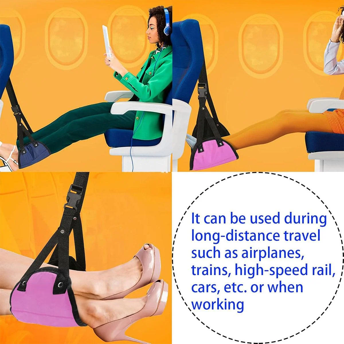Experience ultimate comfort and relaxation for your feet with this travel foot hammock. Perfect for use in airplanes, office desks, and trains, it features soft padding for a comfortable resting experience and adjustable straps to customize the hammock height for optimal support. Its foldable design makes it highly portable and easy to store, ensuring your travel or work experience is more comfortable and relaxing.