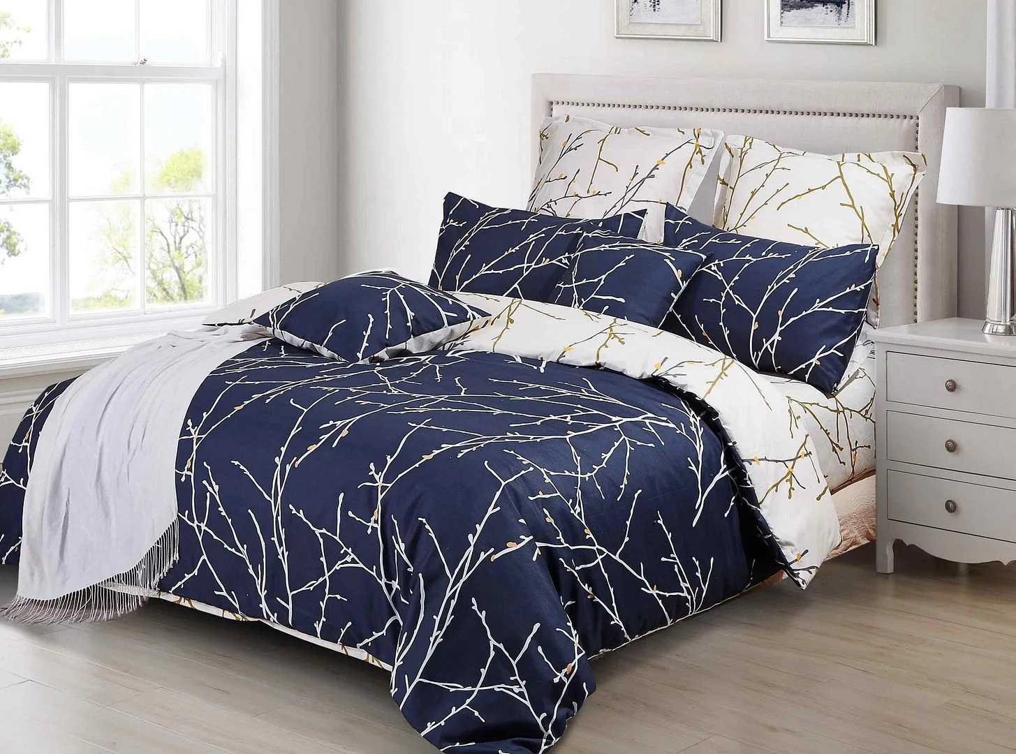 Tree Reversible King Size Blue Duvet Quilt Cover Set