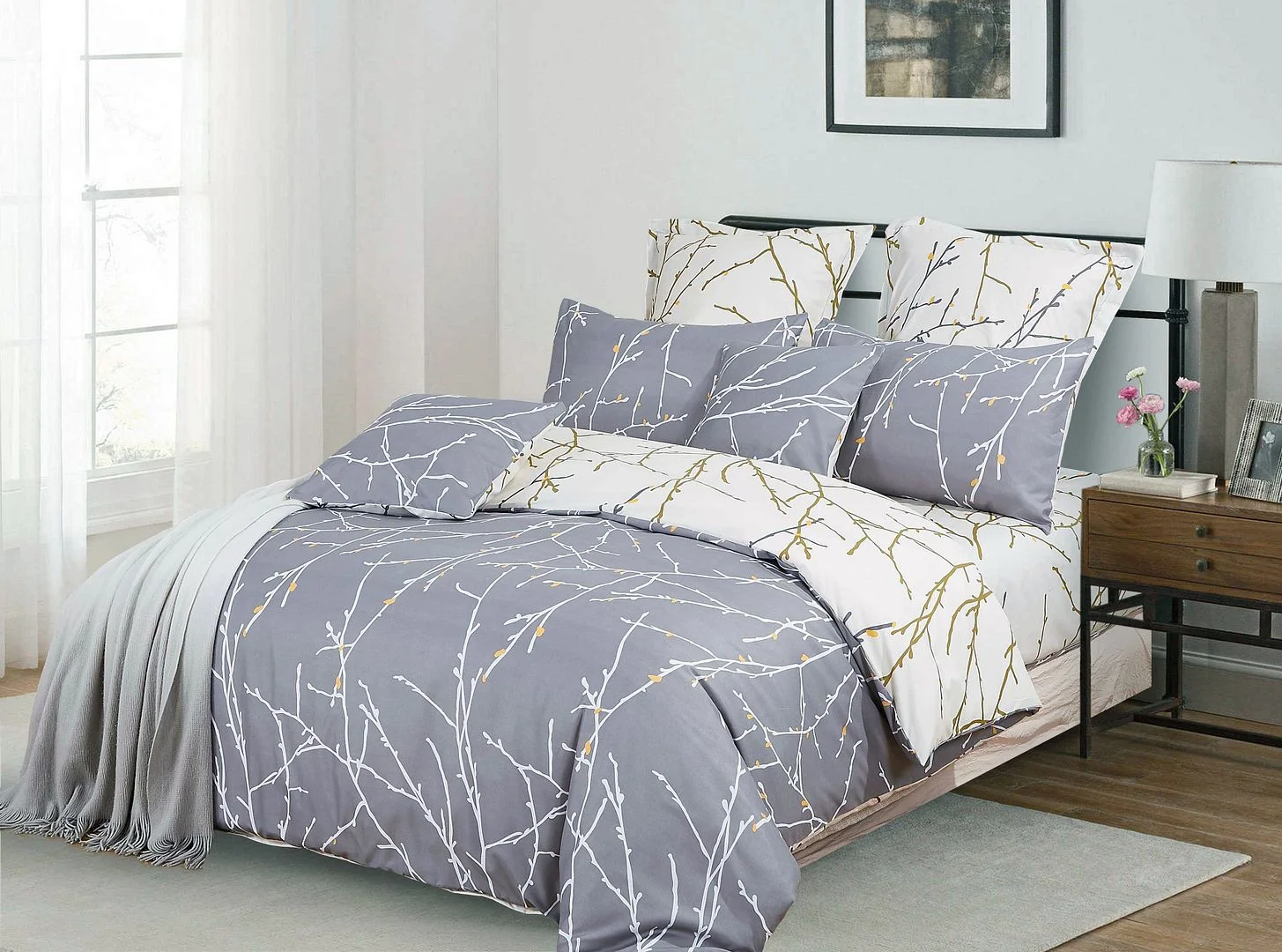 Tree Reversible Queen Size Grey Duvet Quilt Cover Set
