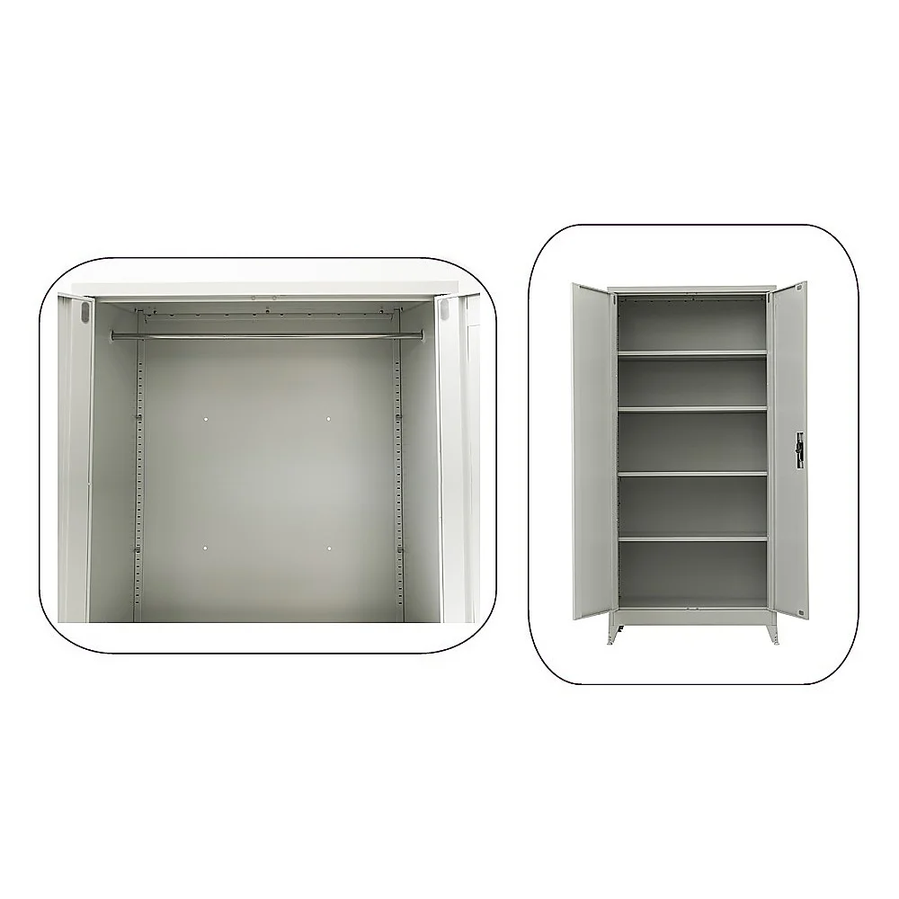 This two-door metal wardrobe made of galvanised steel of 0.6mm thickness (doors/sides/top) and 0.8mm (bottom), painted with special electrostatic paint for maximum resistance to weather conditions and corrosion.