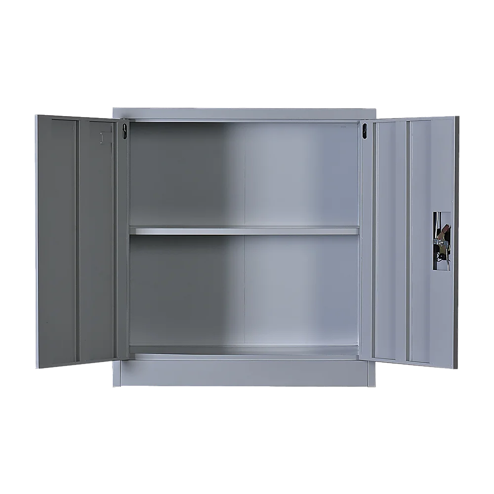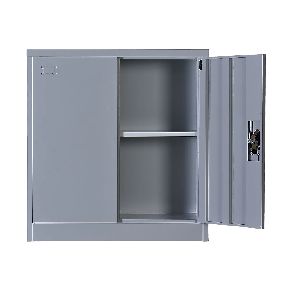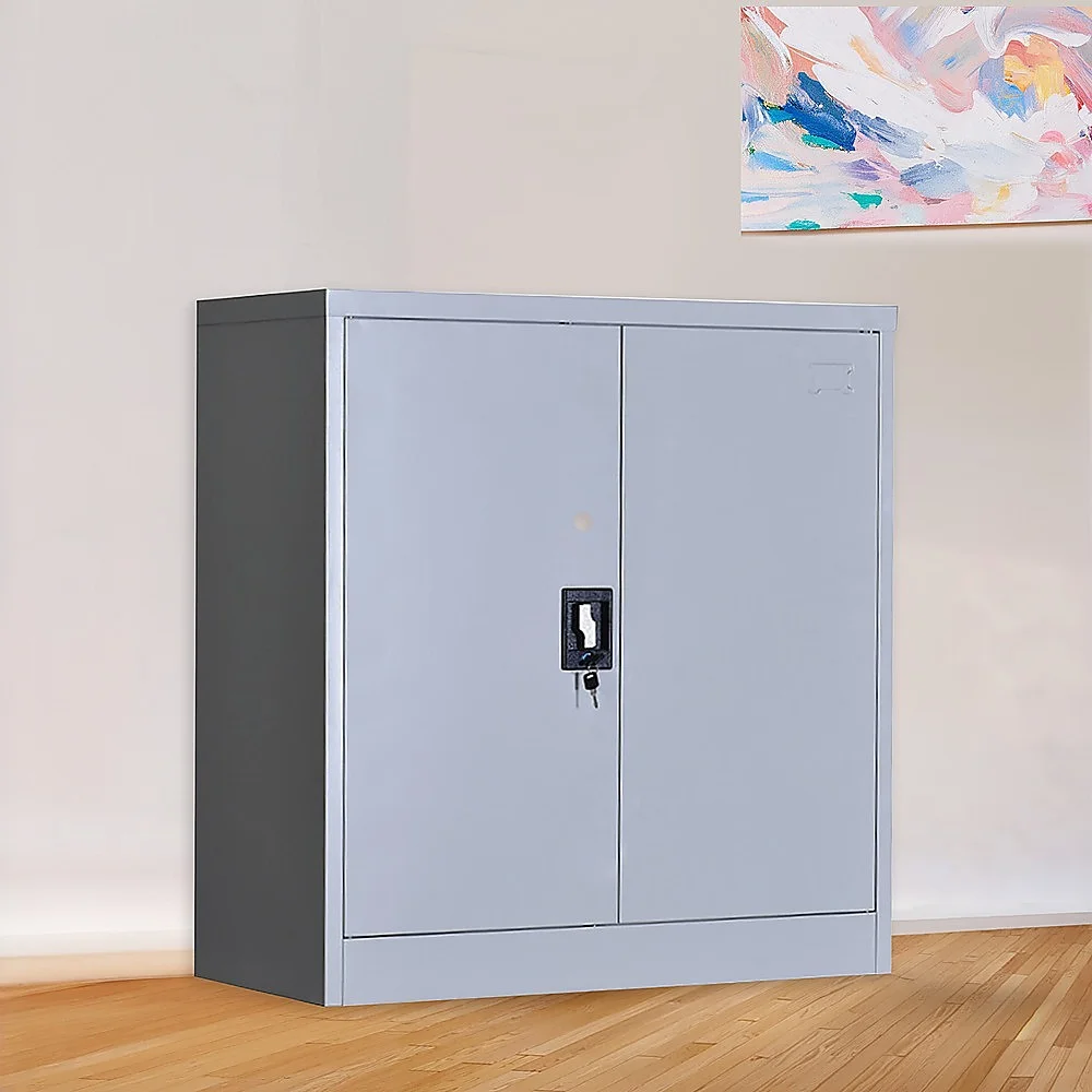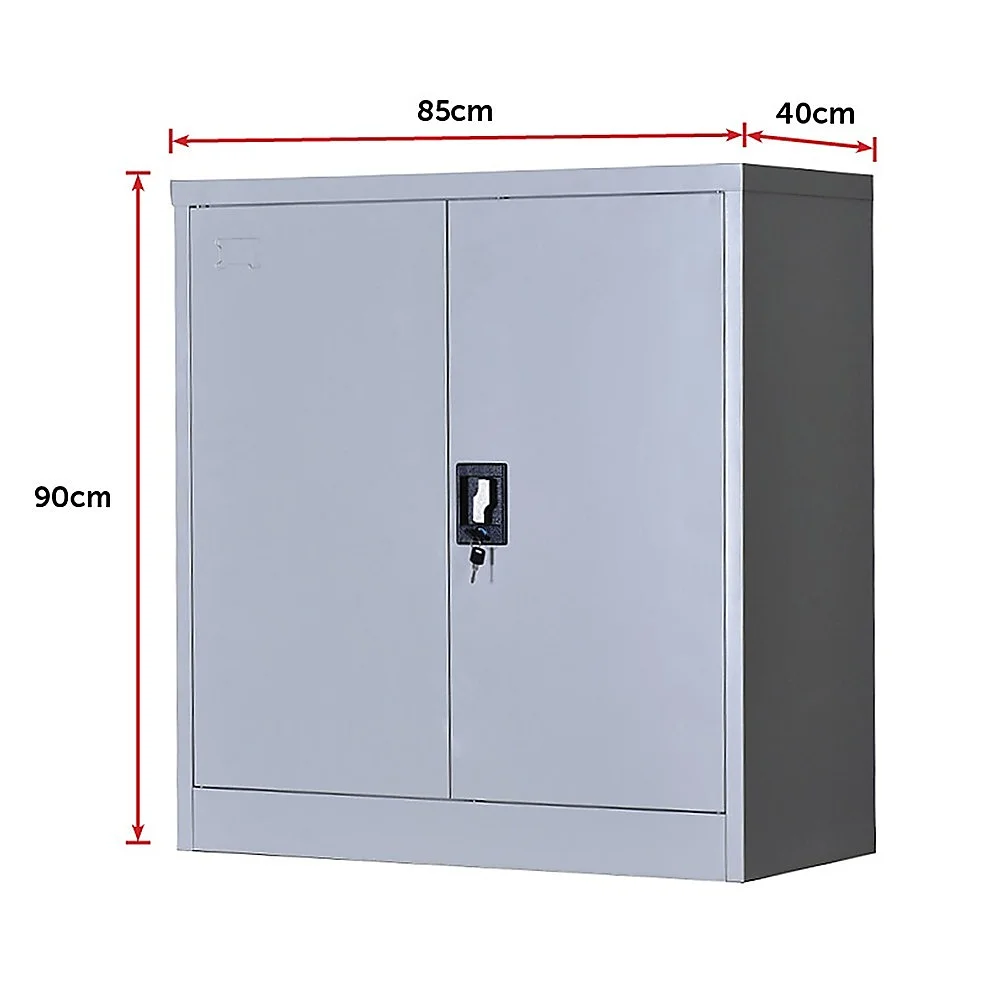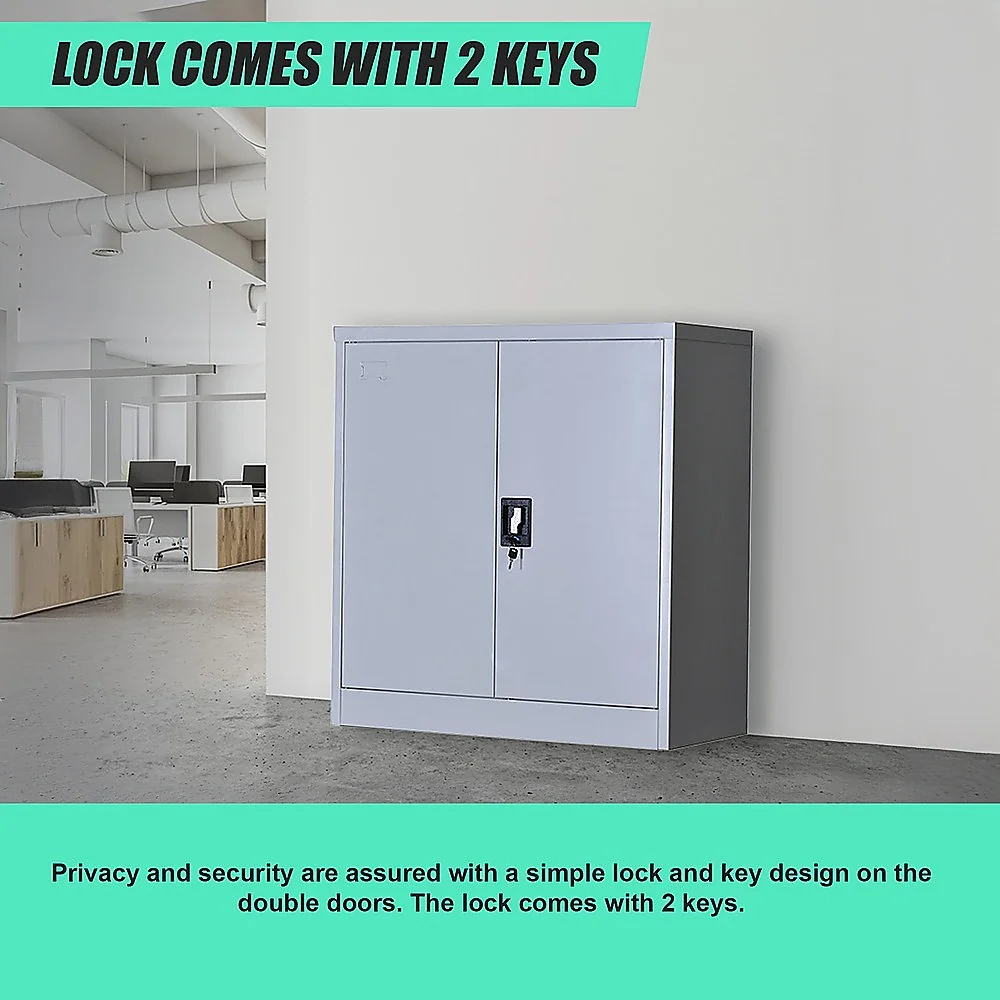 The cabinet is constructed with solid cold-rolled steel plate for excellent sturdiness and durability, not to mention an attractive look. The steel is also powder-coated to resist corrosion. The cabinet measures 90 x 85 x 40 cm, and the maximum recommended weight capacity is approximately 40kg per shelf.. Privacy and security are assured with a simple lock and key design on the double doors. The lock comes with 2 keys.