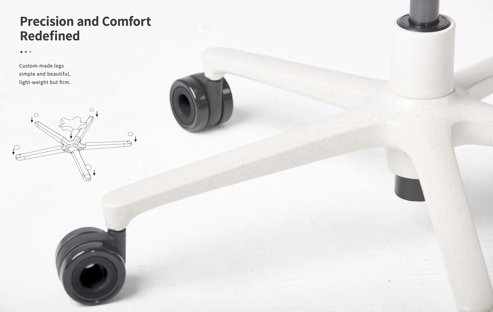 - Materials: Setting cotton + fabric/leather (Cushion), ABS + iron (Body), ADC12 (Armrest), Steel (Leg), ADC12/PA6 (Caster)