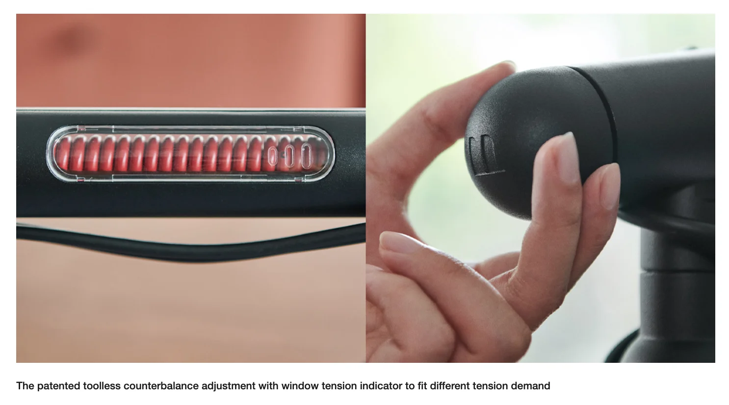 - Patented Counterbalance Adjustment: Features a toolless counterbalance adjustment with a window tension indicator for precise adjustments.