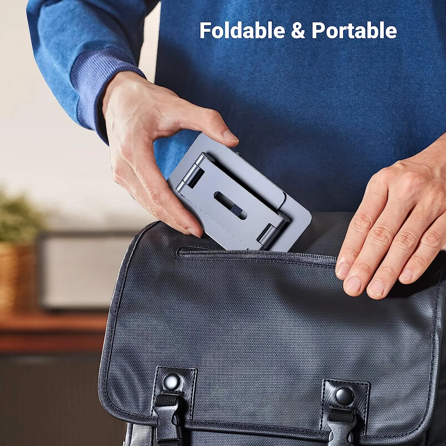 Bi-folding design allows the mobile phone stand to be pocket-sized and carried around into a handbag, or backpack wherever you are traveling or out of the office.