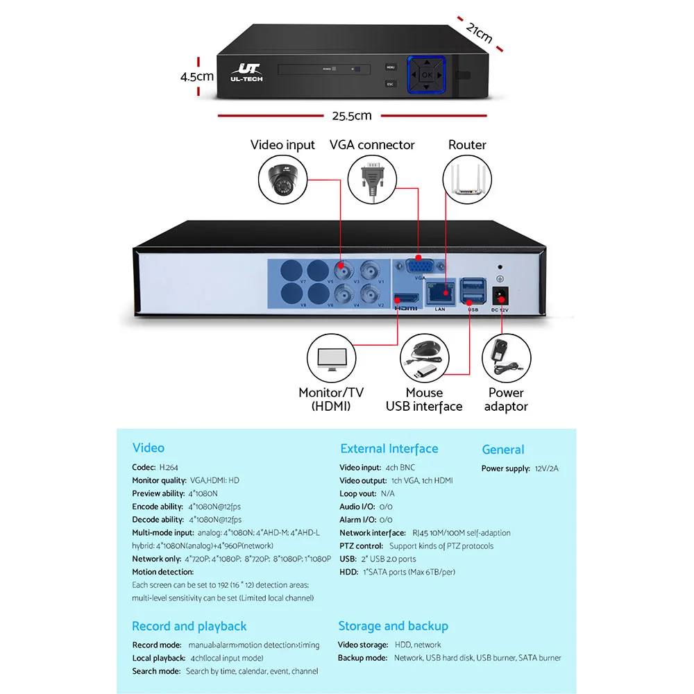 UL-tech Wireless CCTV Security System 8CH NVR 3MP 4 Bullet Cameras