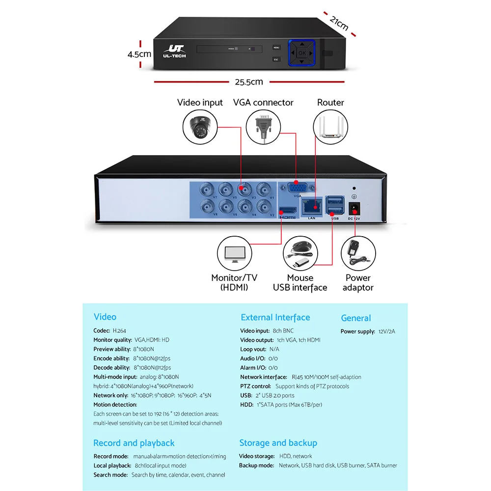 Motion detection of up to 192 areas. Infrared night vision within a 20m radius. A camera resolution of 1080P HD for live and recorded video that is supremely better than the usual 720P used in most DIY home security systems. The UL-Tech CCTV 1080P 8-channel CCTV Security Camera is simply one of the best home surveillance systems that you can get in the market today.