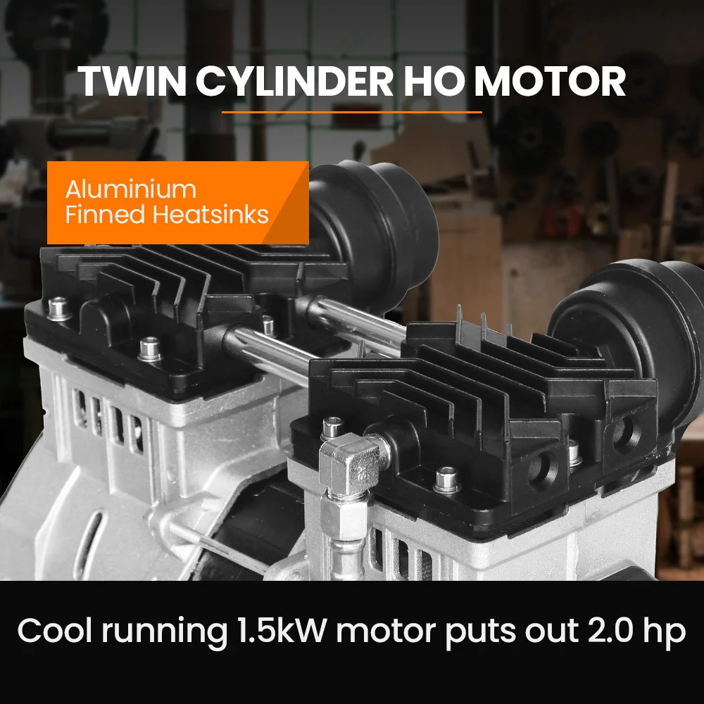 This ACM-400s Oil-Free Air Compressor is powered by a twin-cylinder 1.5kw motor which is equivalent to a total output of 2.0HP up to 40% more than comparable models on the market!