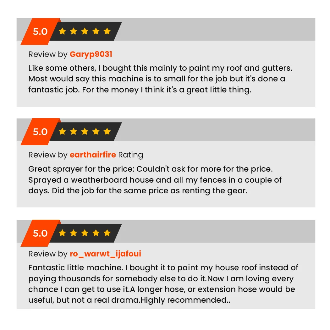 The Unimac 740W Airless paint sprayer features professional grade accessories. The all metal spray gun produces a perfect coating and withstands long-term wear and tear. Its massive 7.5m high pressure hose coupled with the BONUS nozzle extension wand means you can get paint anywhere you need it. Not to mention the paint pressure regulator, and quality mesh paint filter, all of which work together to ensure that your coatings are applied to a flawless professional standard!