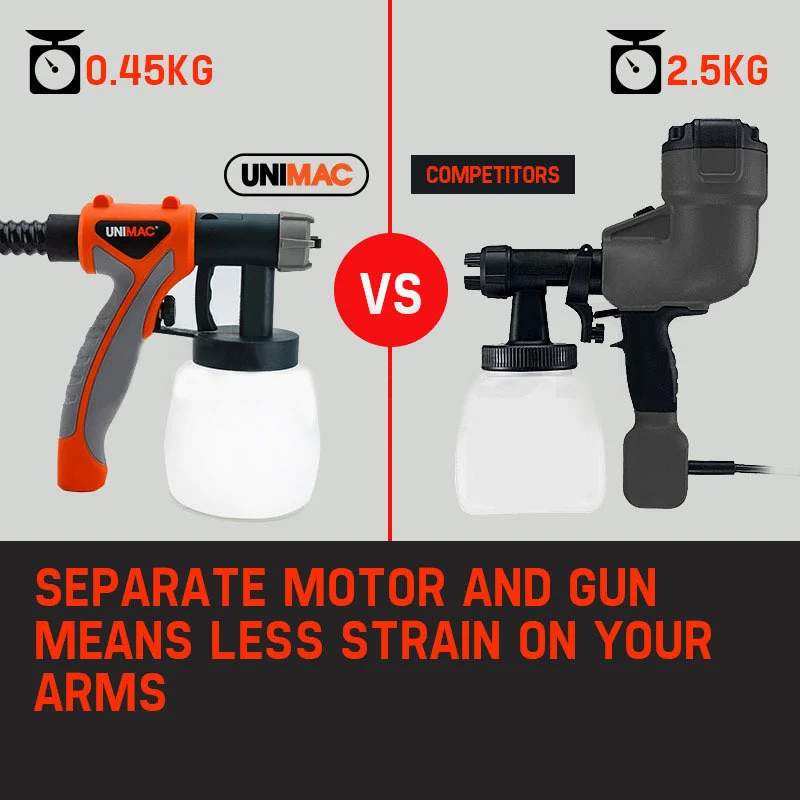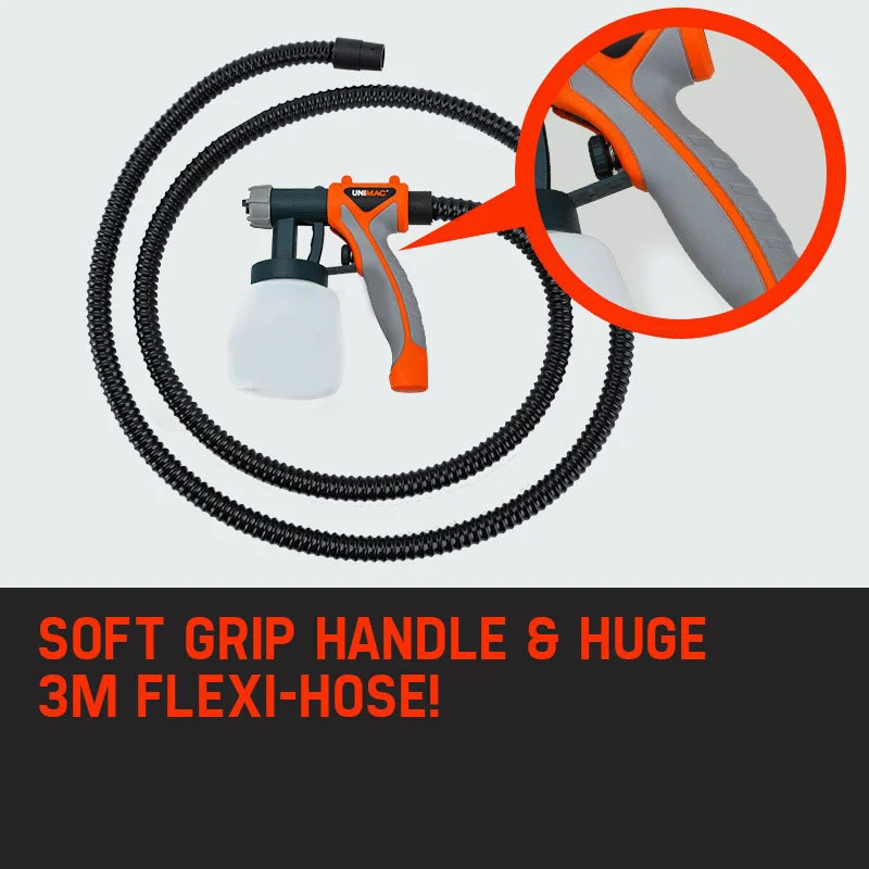 Whatever it is you need coated, youll rejoice in the Unimac 740W paint sprayer trolleys lightweight ergonomic design, super smooth trigger action and perfect paint application.