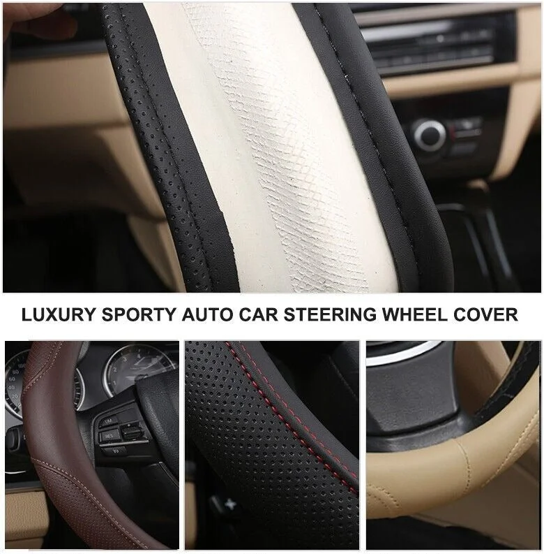 The Universal 38cm Car Steering Wheel Cover is a premium car accessory designed to enhance both the comfort and style of your driving experience. Crafted using computer laser drilling technology, this steering wheel cover offers excellent breathability and durability. The non-slip and breathable design ensures a secure grip on the steering wheel, while the professional stylish stitching adds a touch of elegance to your car's interior. The strong fine sewing techniques guarantee a perfect finish, ensuring a long-lasting and reliable performance. This steering wheel cover is universal and fits most car steering wheels with a diameter ranging from 37cm to 38cm, providing a snug and comfortable fit.