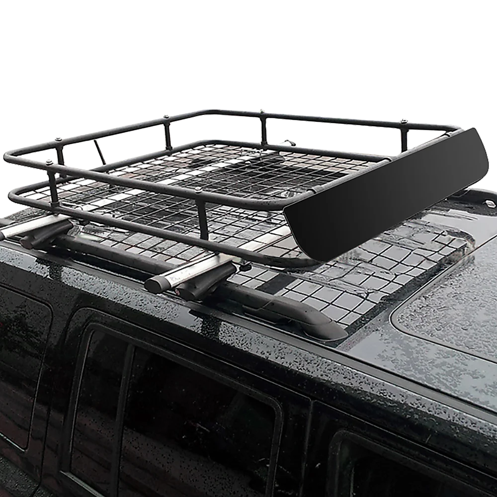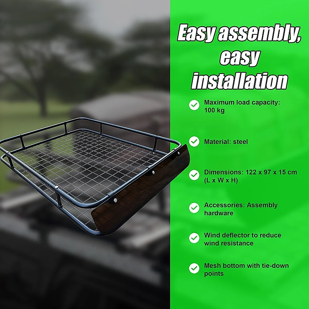 Fitting easily atop the roof of your car, this beautifully designed roof rack can carry up to 100 kilogrammes of cargo. Its bold, sleek lines echo those of even the most modern car, while its wind deflector keeps your cargo's wind resistance to a minimum, lowering your fuel costs and keeping your cargo safe. It's easy to assemble, easy to install, and off-road capableso you can take it anywhere your vehicle can go. Order yours today!