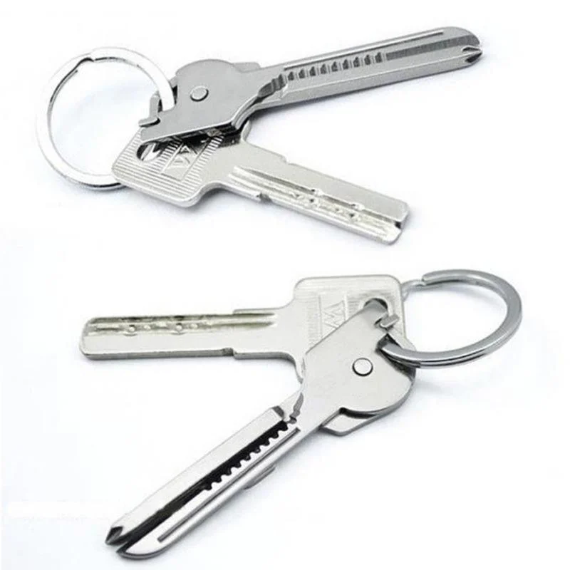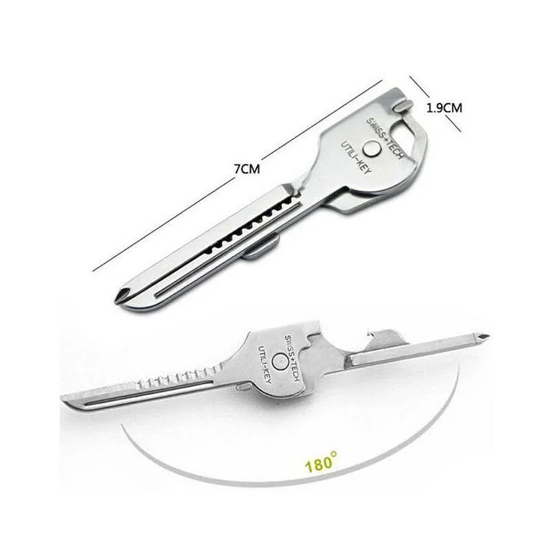 Be ready for everyday fixes with this 6-in-1 stainless steel Utili-Key multi-tool, designed to fit discreetly on your keyring. Compact yet surprisingly functional, this key-shaped tool features a straight blade, serrated knife edge, Phillips and flat screwdrivers, micro eyeglass screwdriver, and a bottle opener—all integrated into a durable 420C stainless steel body. Ideal for travel, camping, emergency repairs or simple daily tasks, it offers a quick-release mechanism that locks firmly onto your keyring and unfolds effortlessly when needed.