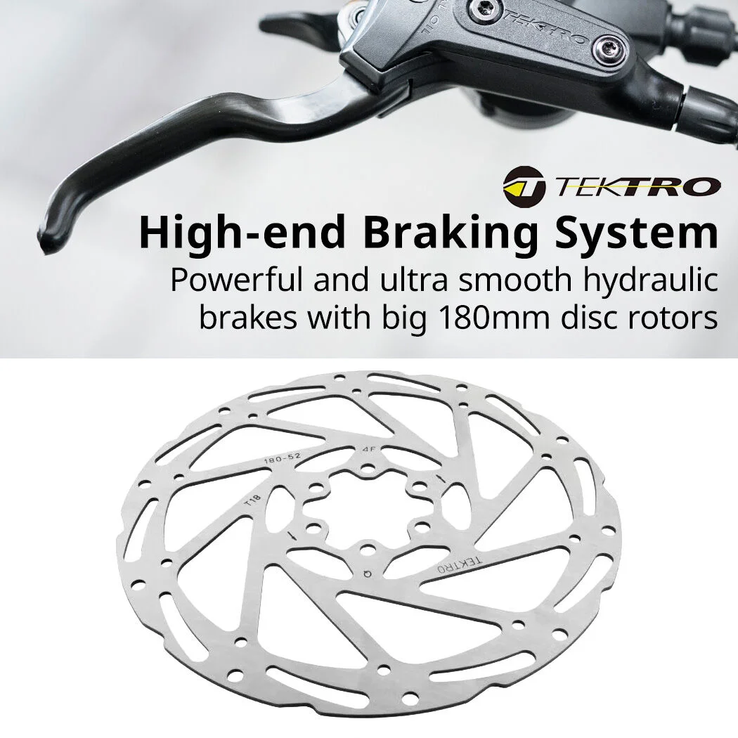 It features an easy-access step-through frame, a premium alloy frame, high-end Tektro hydraulic disc brakes, Shimano 7 speed gears, a headlight that runs off that battery and a handy rear rack for securing your gear. So, grab some mates and hit the beach or discover some new trails!