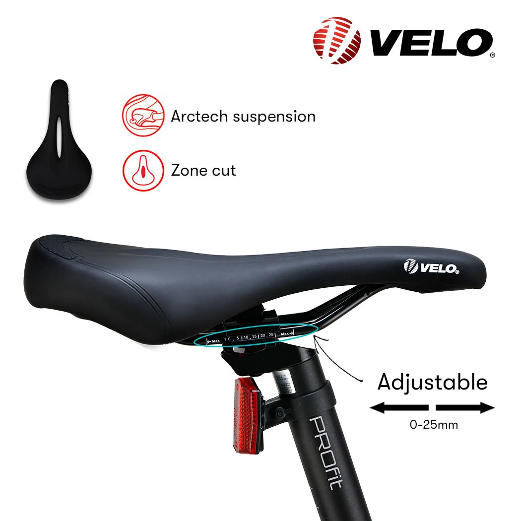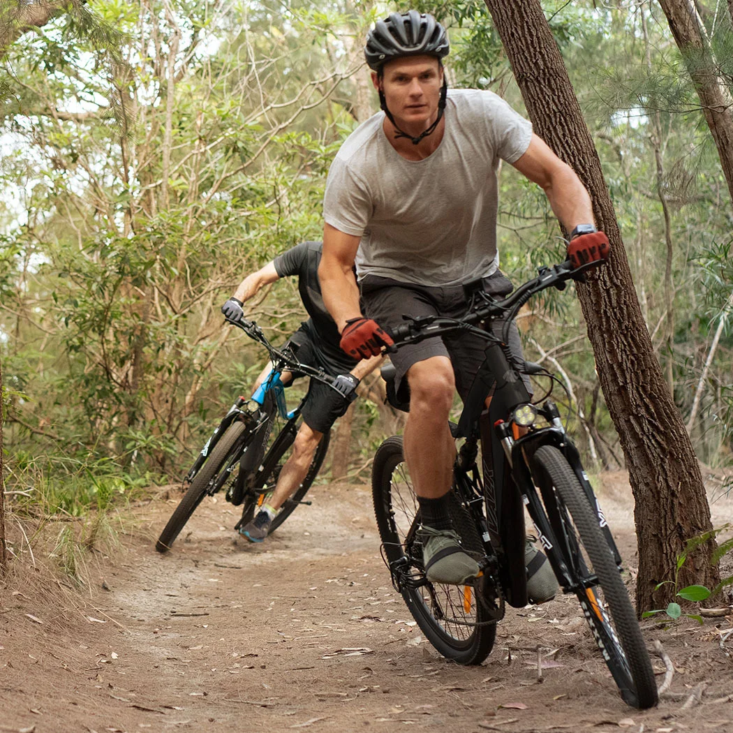 The MX7 series e-MTB comes equipped with Shimano 7-speed SIS-Index gears and derailleur, and a high performance VELO saddle. Front and rear disc brakes and low-profile dual rubber compound 27.5" Maxxis Pace tyres offer serious control.