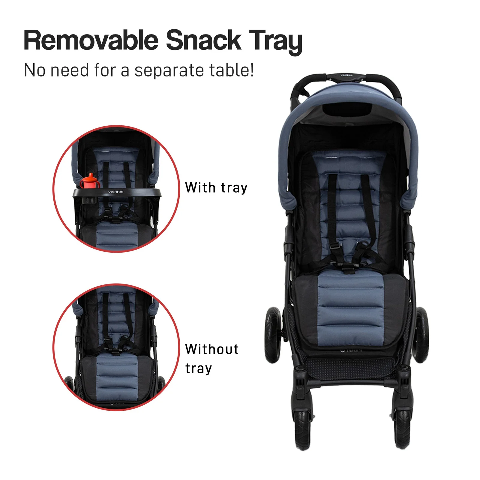 The NAV 4 is robust and sturdy, with four rugged wheels for unmatched stability. It has a retractable UPF 50+ canopy to block 99% of harmful UV-A and UB-B rays. The peek-a-boo window lets you check on your baby easily whether they are sleeping or sitting. Plus, the fully reclinable seat and adjustable footrest ensure that your little one stays comfy. Other features include a spacious storage basket and a removable snack tray.