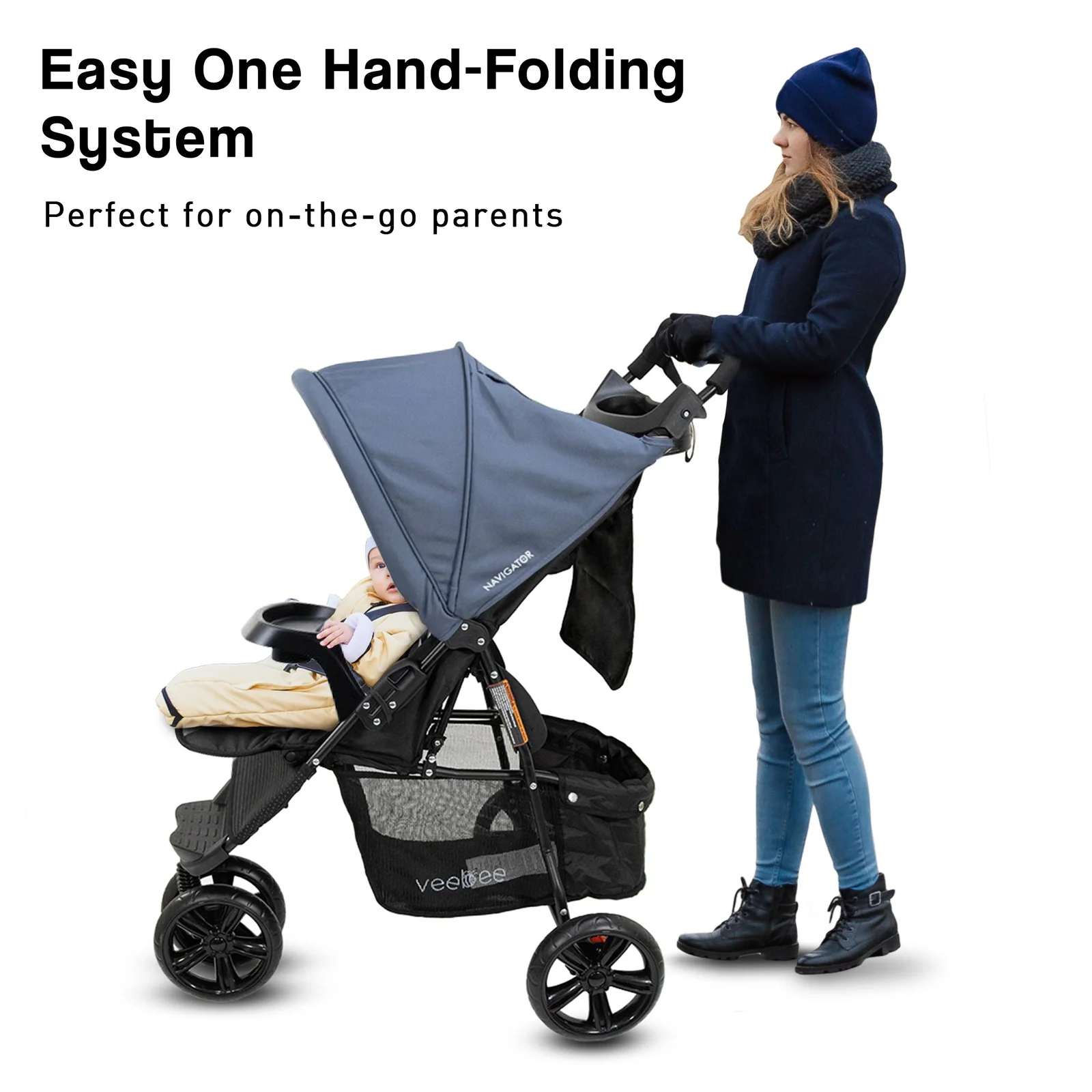 For families on the go, nothing beats the convenience of the Veebee Navigator! This 3-wheel stroller is packed with useful features for parents and babies. The slim front makes it easy to navigate busy sidewalks and parks without compromising stability. At only 7.2kg, this stroller is light enough for everyday adventures with your baby. The sturdy frame is ideal for newborns and toddlers up to 22kg.