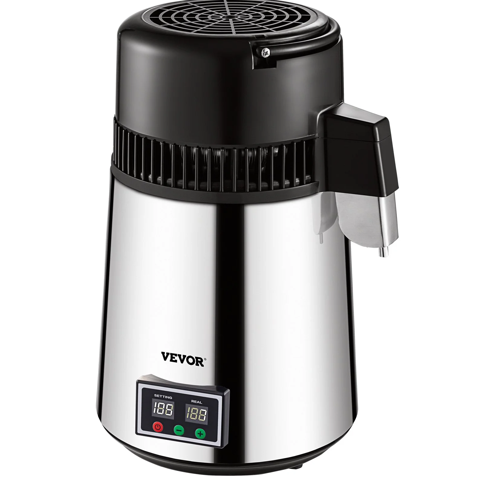 Coming with simplified buttons and a dual temperature display (setting & real), our countertop water distiller is of convenient operation. It is thermostatically controlled with automatic shutoff for overheating protection when the temperature exceeds 226.4_ (108 Celsius).