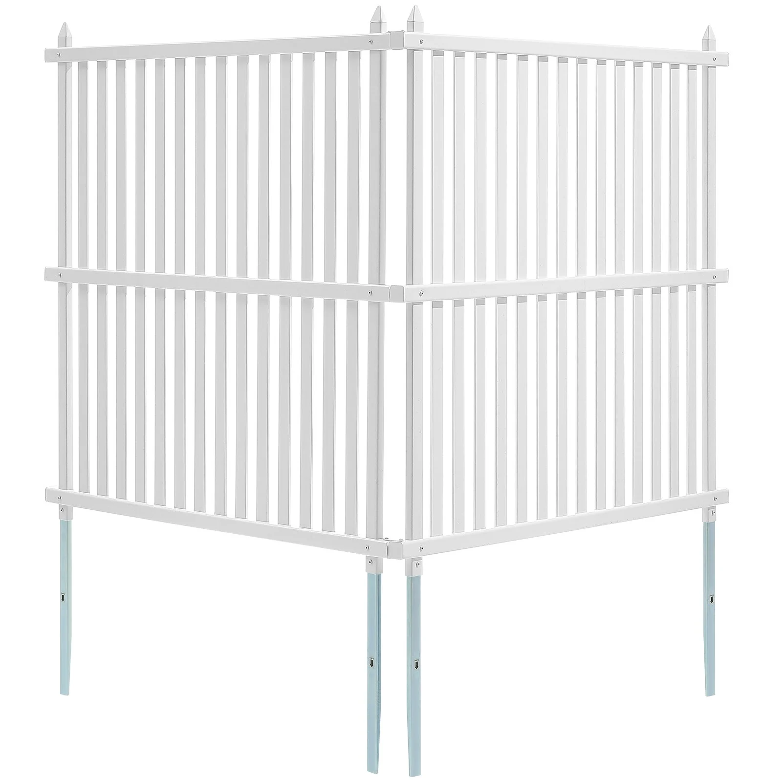 Our vinyl fence is crafted from premium PVC instead of cast iron, it's more resistant to water and corrosion. The smooth surface resists dust and stains, while the simple white color complements any setting. For added practicality, metal feet have replaced plastic ones, enhancing overall robustness. The umbrella-shaped protective caps reduce water accumulation.