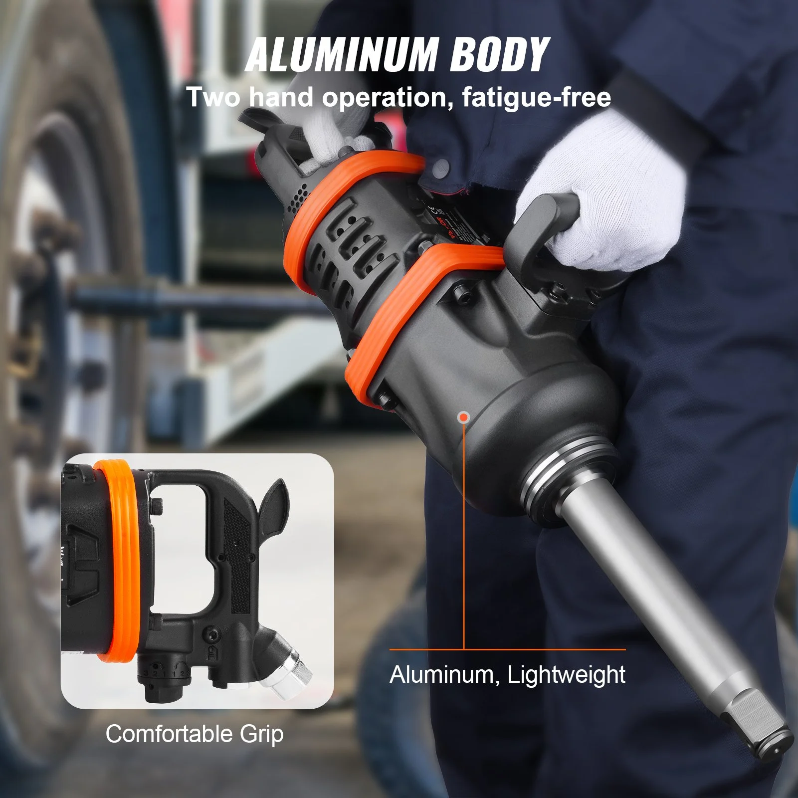Deliver up to 4950 foot-pounds high torque output and the breakaway torque even reaches 5175 ft-lbs, more powerful air impact wrench to tackles heavy duty vehicle applications, like heavy truck, bus, and tractor tires.