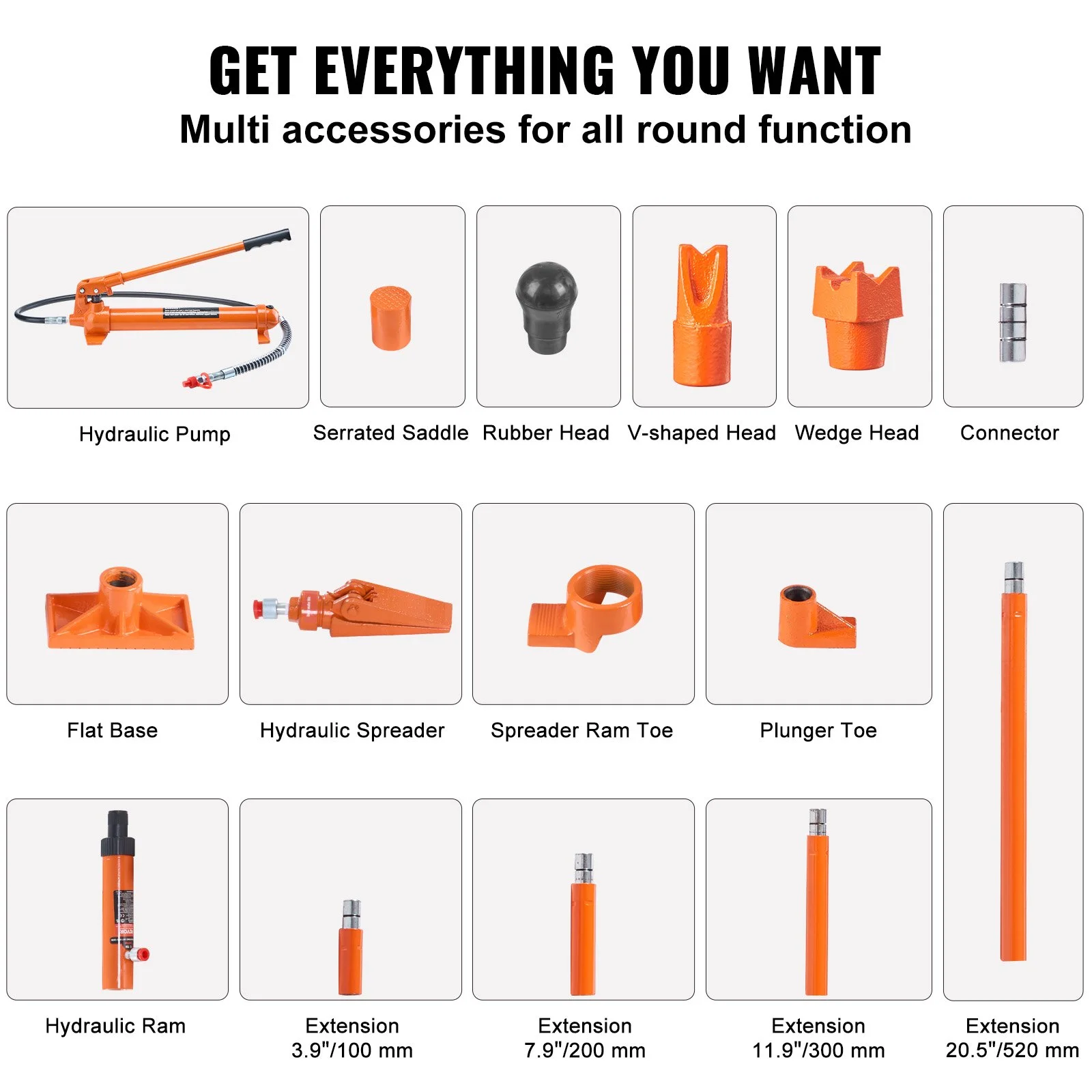 The whole hydraulic jack body tool kit is compact and complete for the best working performance. The portable case is included for easy storage. You can carry the tool kit more easily.