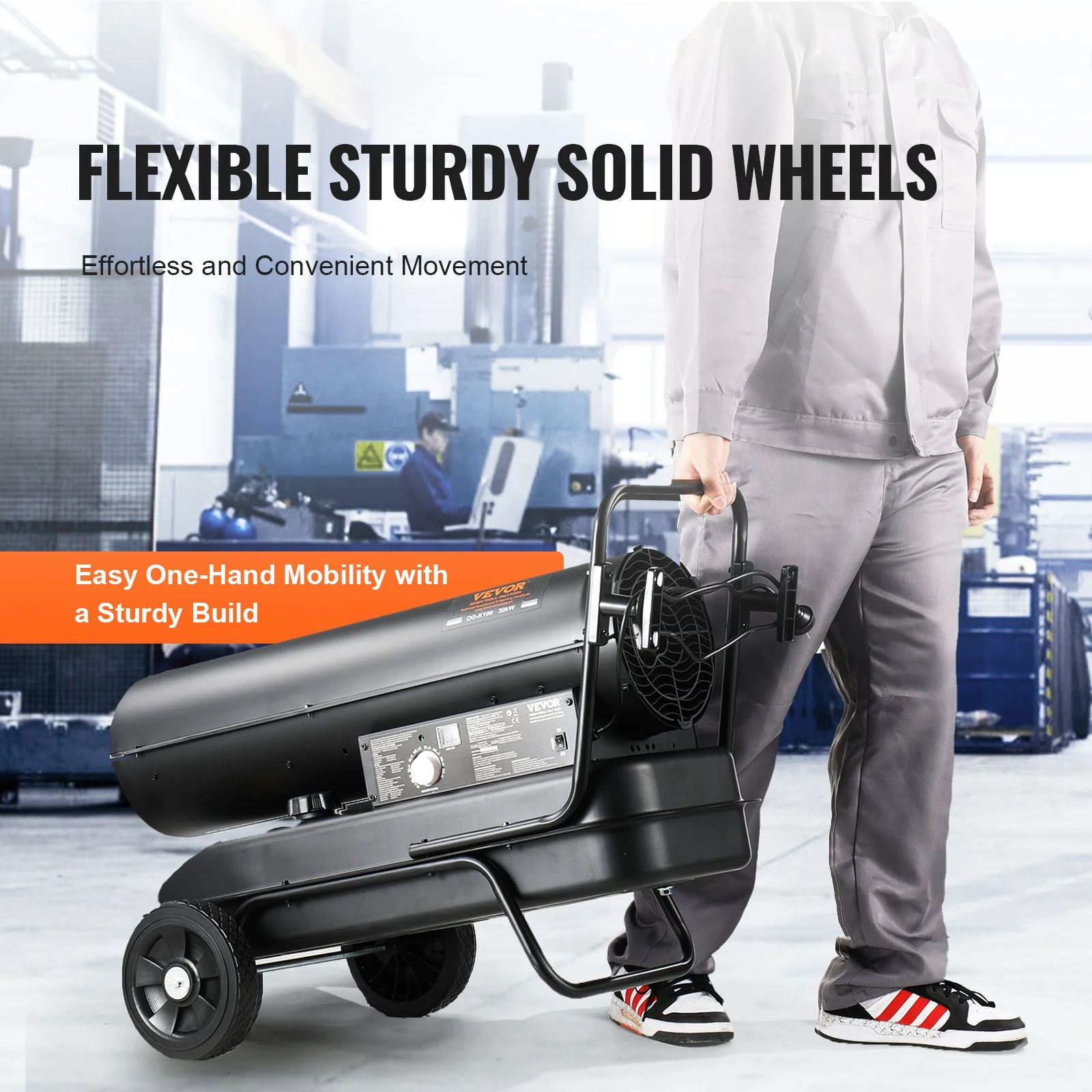 This forced-air kerosene heater delivers 100,000 BTUs of heat, instantly warming up spaces like your workspace, barn, workshop, farm, or indoor areas up to 43084 cuft / 1200 m_. It ensures efficient equipment operation and worker comfort.