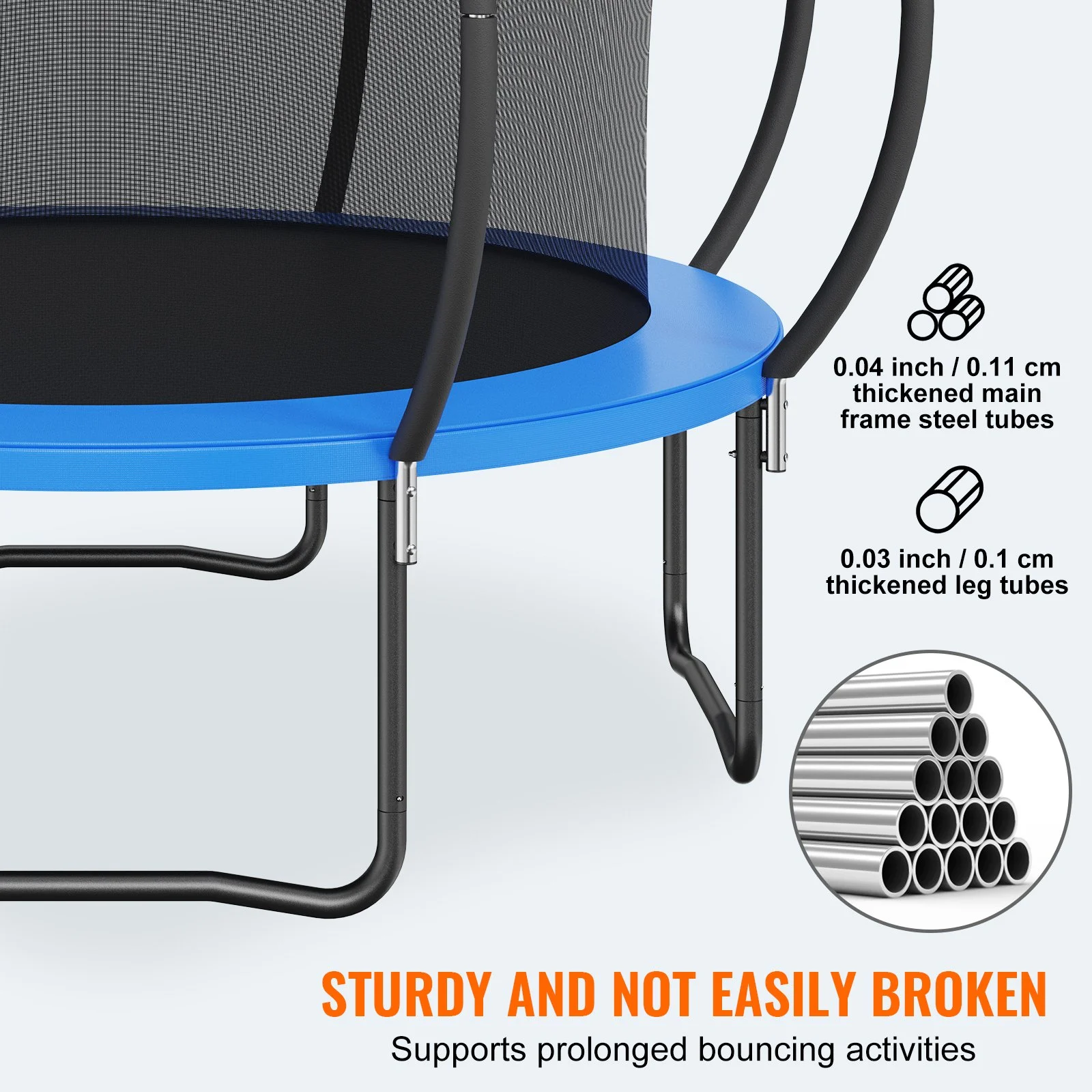 With a 33.85 inch / 86 cm high ladder, this heavy duty trampoline offers increased bounce height. It is equipped with 64 heavy-duty springs and a 260 g/m_ high-elasticity mat, providing outstanding bouncing power and helping children experience the joy of bouncing.