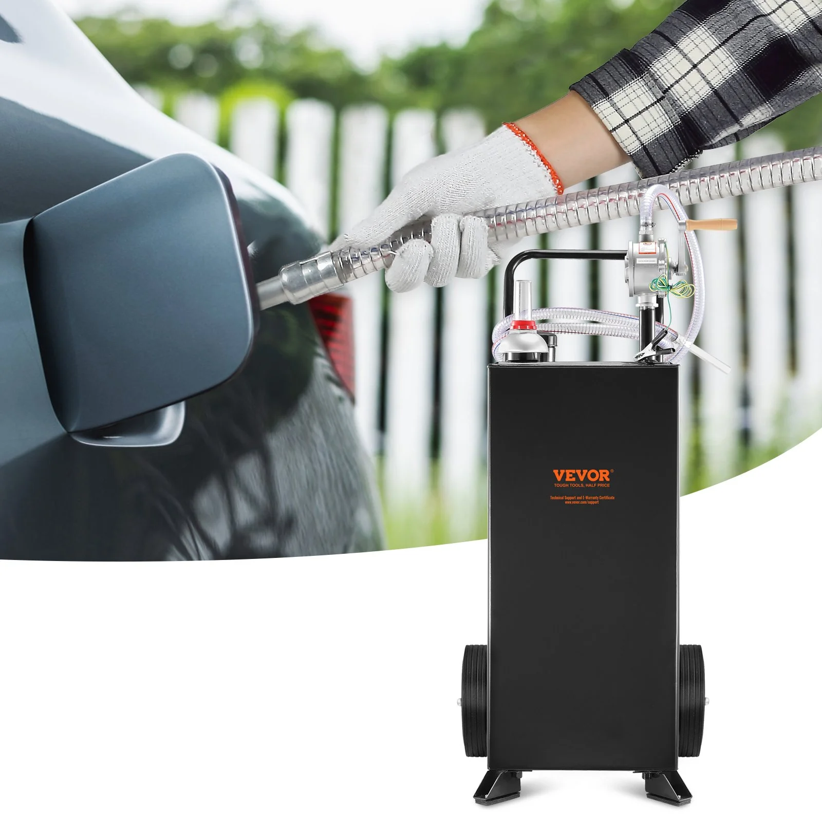 Made of durable carbon steel material, this gas tank with pump is capable of handling changing weather conditions, and is resistant to UV radiation and dents. This high-quality material ensures long service life. Never get left behind.