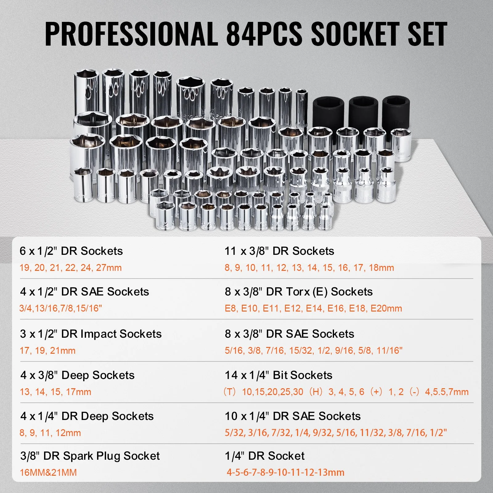 VEVOR Impact Socket Set 3/4 Inches 29 Piece Impact Sockets, 6-Point Sockets, Rugged Construction, CR-M0, 3/4 Inches Drive Socket Set Impact SAE 3/4 inch - 2-1/2 inch, with a Storage Cage