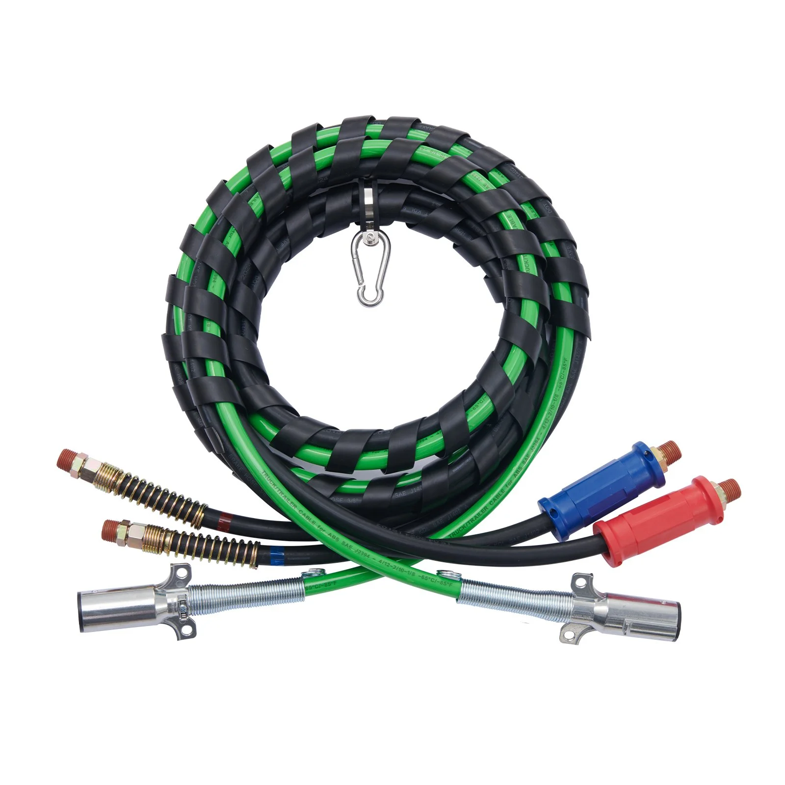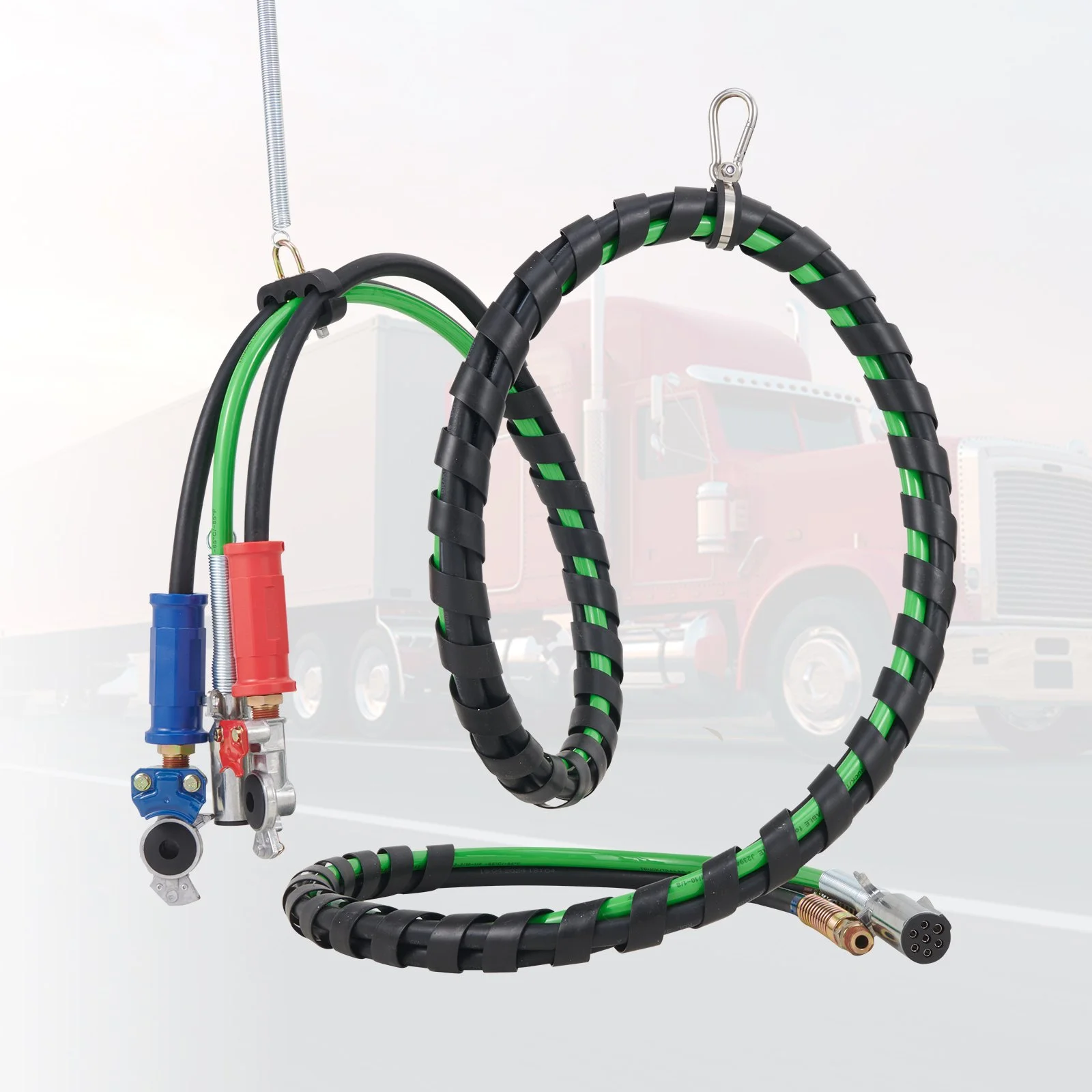 The 3-in-1 air hose kit is more organized and easier to install than standard ABS lines. Connect the air hoses and power line at both ends, then hang the hooks and spring to complete the setup. Regularly check the seals and replace them promptly; remove and store the gladhands properly when not in use.