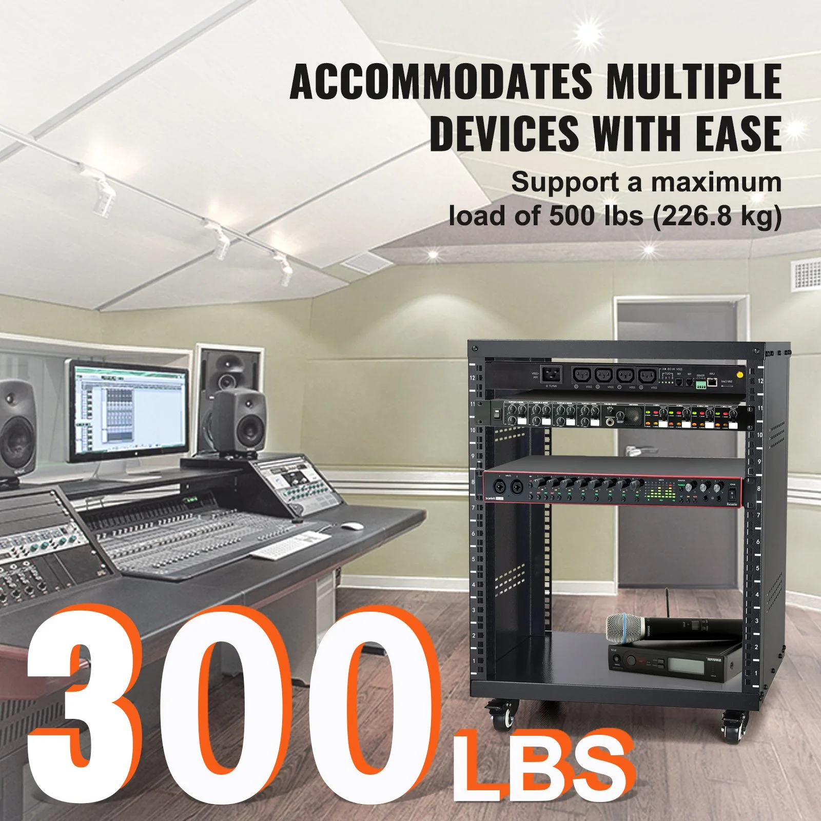 Our 12U recording studio rack, with a depth of up to 18 inches, is designed to accommodate a wide range of equipment. Its open-front and open-back design makes wiring and maintenance a breeze, and it is perfect for use as a stereo rack, A/V equipment cabinet, media rack, server rack, and more.