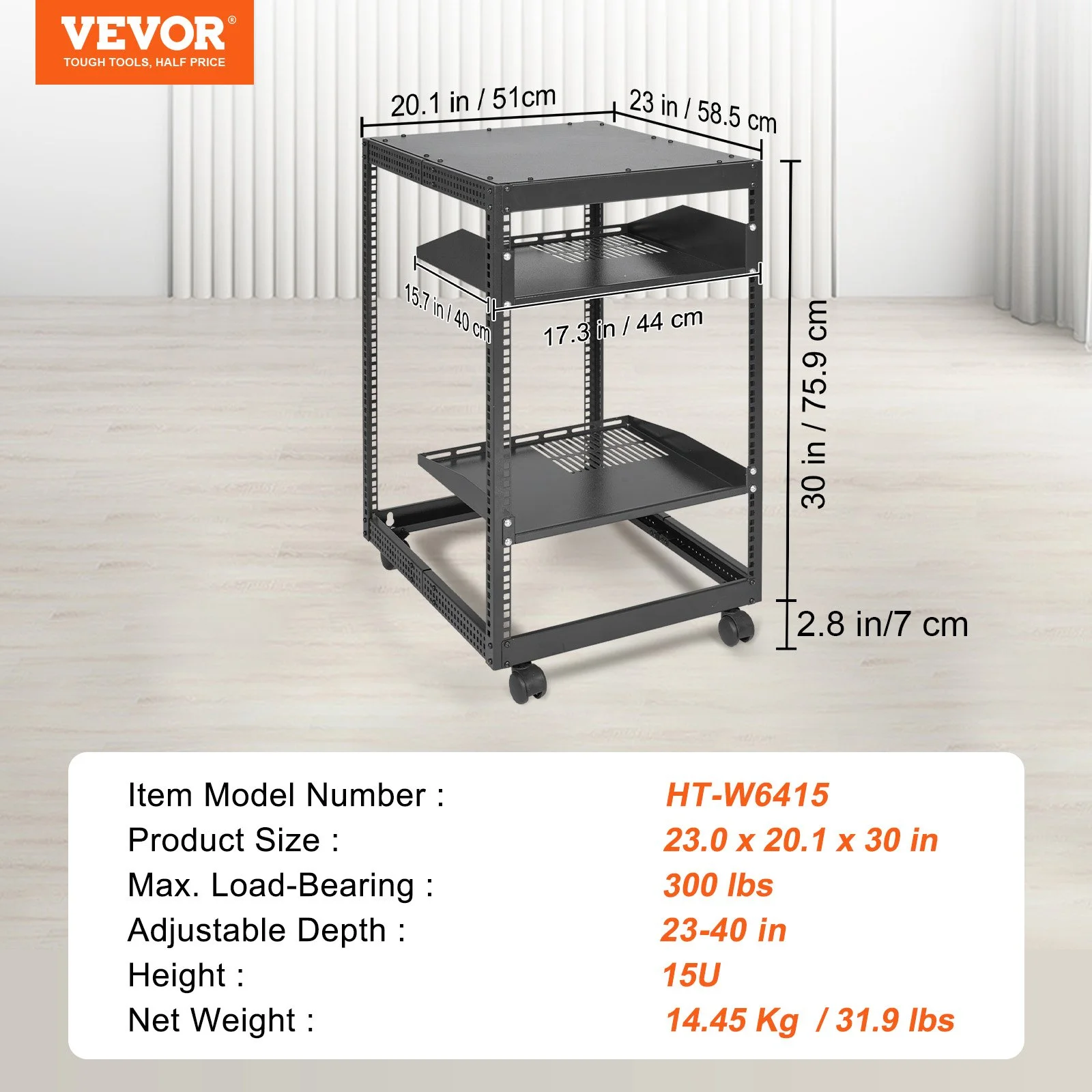 23''-40'' adjustable depth is used for servers and network equipment, ensuring enough space for AV equipment, components, and cabling, while allowing you to access ports and equipment from multiple sides.