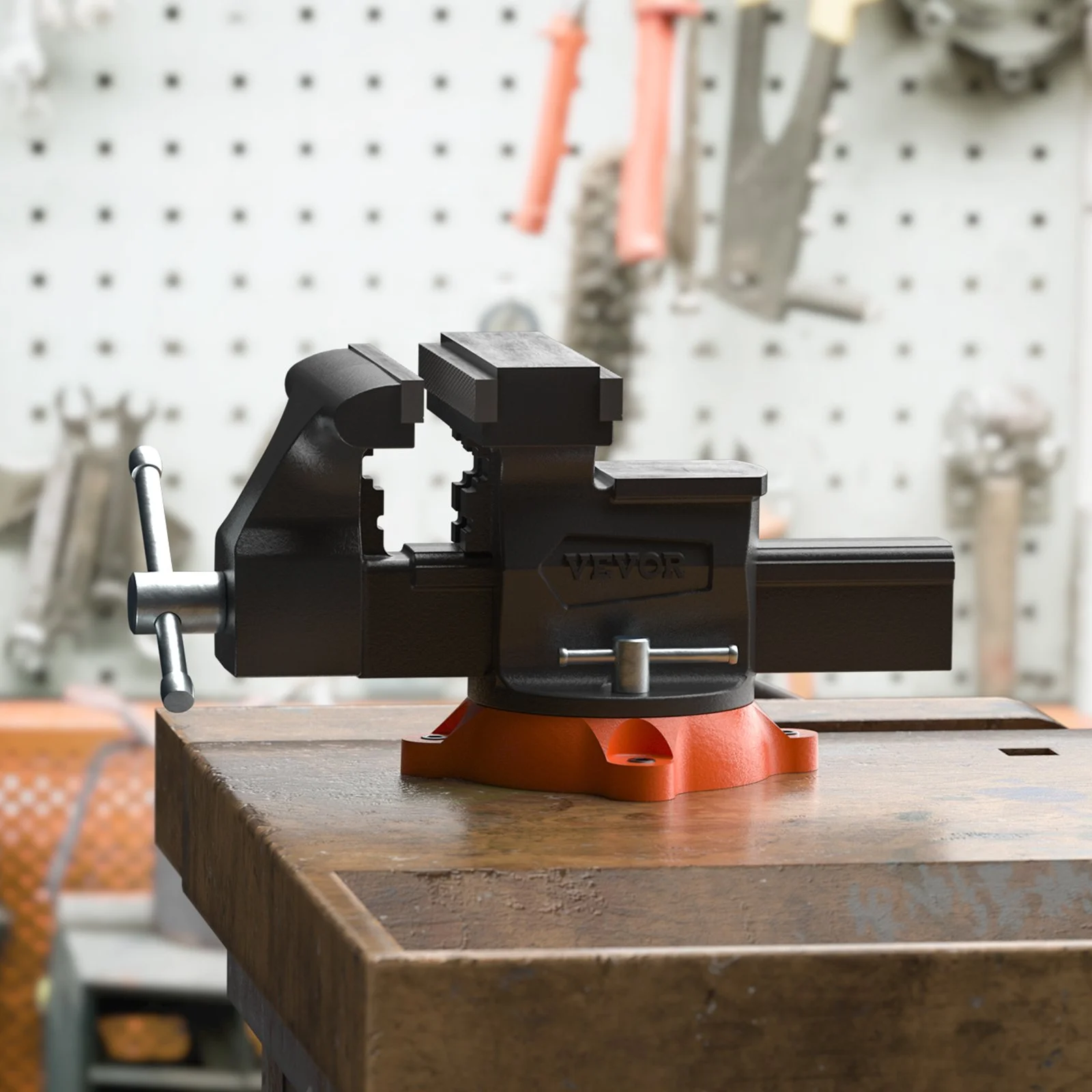 The swivel vice is forged from sturdy 60,000 PSI ductile iron, with a powder coating on the surface for a rust-proof finish. High-quality nuts and screws increase durability. Replaceable serrated jaw plates are made of premium carbon steel for superior grip. Go above and beyond and knock out all those tough projects!