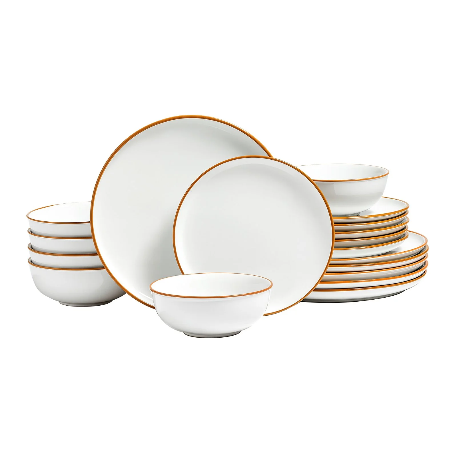This 18-piece dinnerware set includes 6 x 6.4 in bowls, 6 x 8.6 in salad plates, and 6 x 10.6 in dinner plates, catering to a variety of daily meals and ideal for gatherings. It can also serve as a housewarming gift