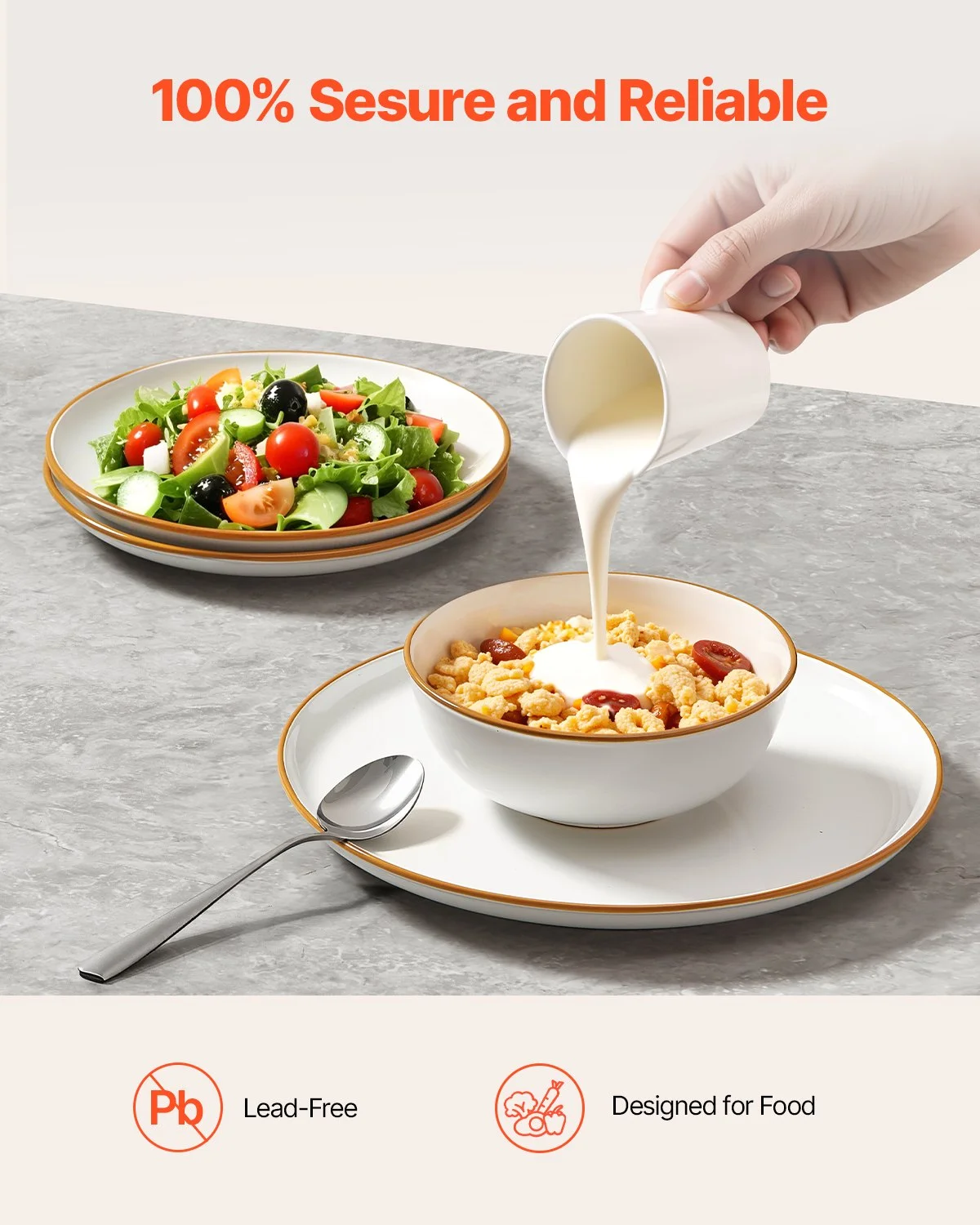 The thickened plates and bowls set is fired at 2372_ (1300_), ensuring crack resistance, scratch resistance, excellent heat resistance, and the ability to withstand frequent, long-term daily use