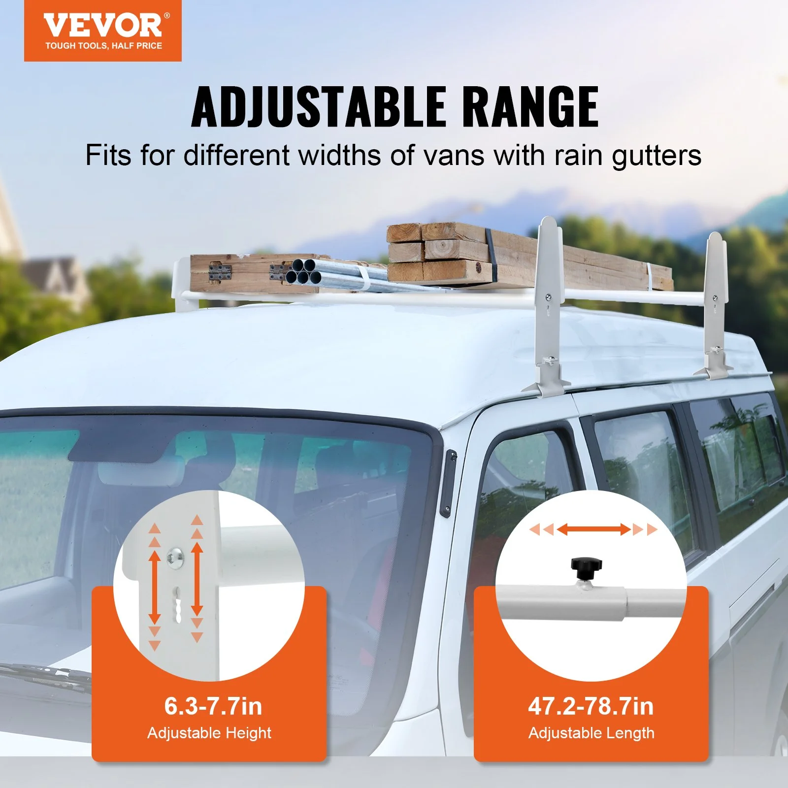 3-Bar Van Roof Ladder Rack Adjustable 56.3"-61.4" for Full-Size Vans