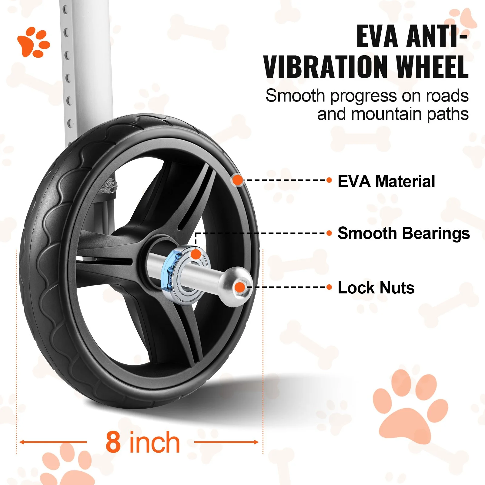 With 8 inch EVA wheels and secure straps, the dog wheelchair for back legs provides a smooth and quiet ride for pets, ensuring stability and silence on any surface. Pets are one of our family members, and when their hind legs are disabled, please don't give up. A wheelchair may give them a second chance.