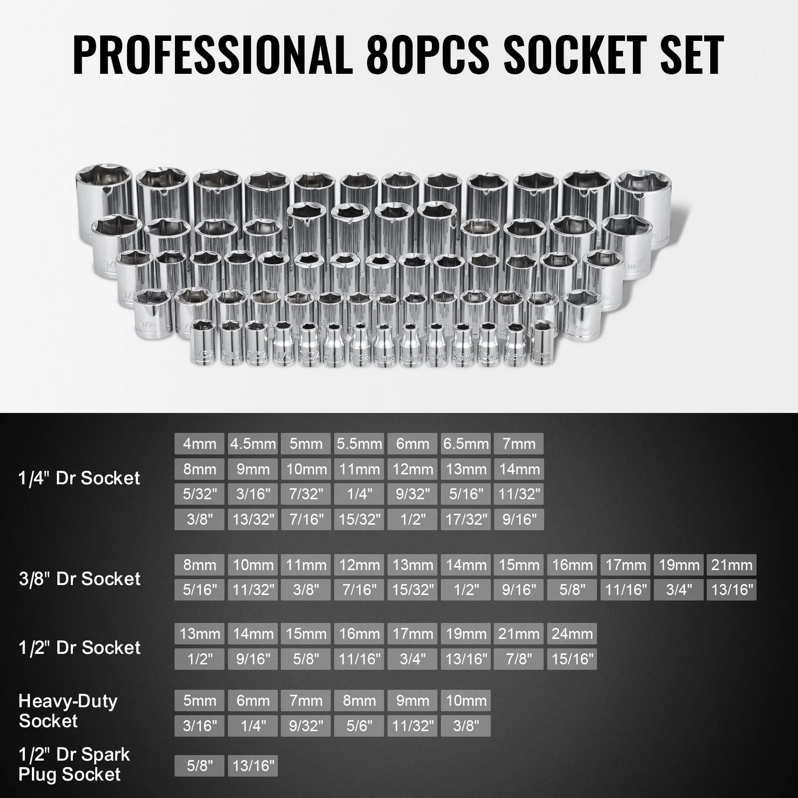VEVOR Impact Sockets Set 59pcs 6-Point 3/8" & 1/2" Drive Bit Ratchet Tool Kit
