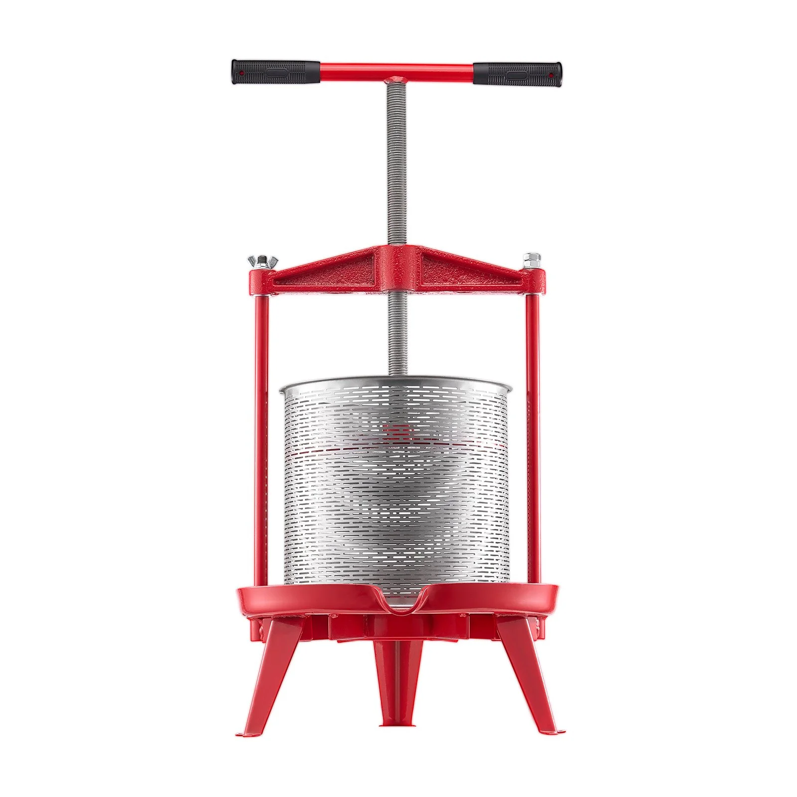 Built with a solid cast iron crossbeam, the fruit wine press can swing open, making it convenient to load the basket or place fruits directly inside. The triangular base ensures stability and secure placement on the ground. Comes with two food-grade filter bags, ensuring secure and hygienic use