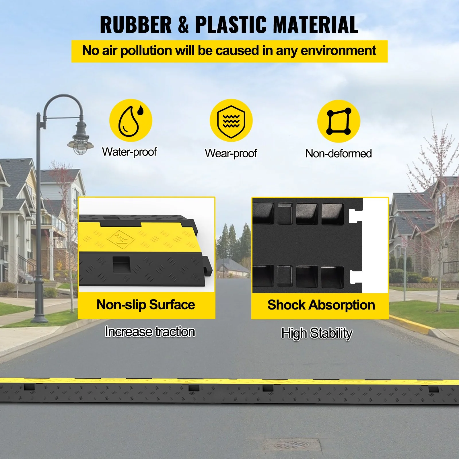Our cable protector cover is constructed with industrial-level rubber and a PVC cover, water-proof, wear-proof, and non-deformed for long-lasting usage. Flip-open design allowing you to place or remove cables quickly and easily. Texture strips on the surface for vehicles to pass without sliding; Bottom shock absorption has strong stability to control traffic speed while not damaging cars or roads.