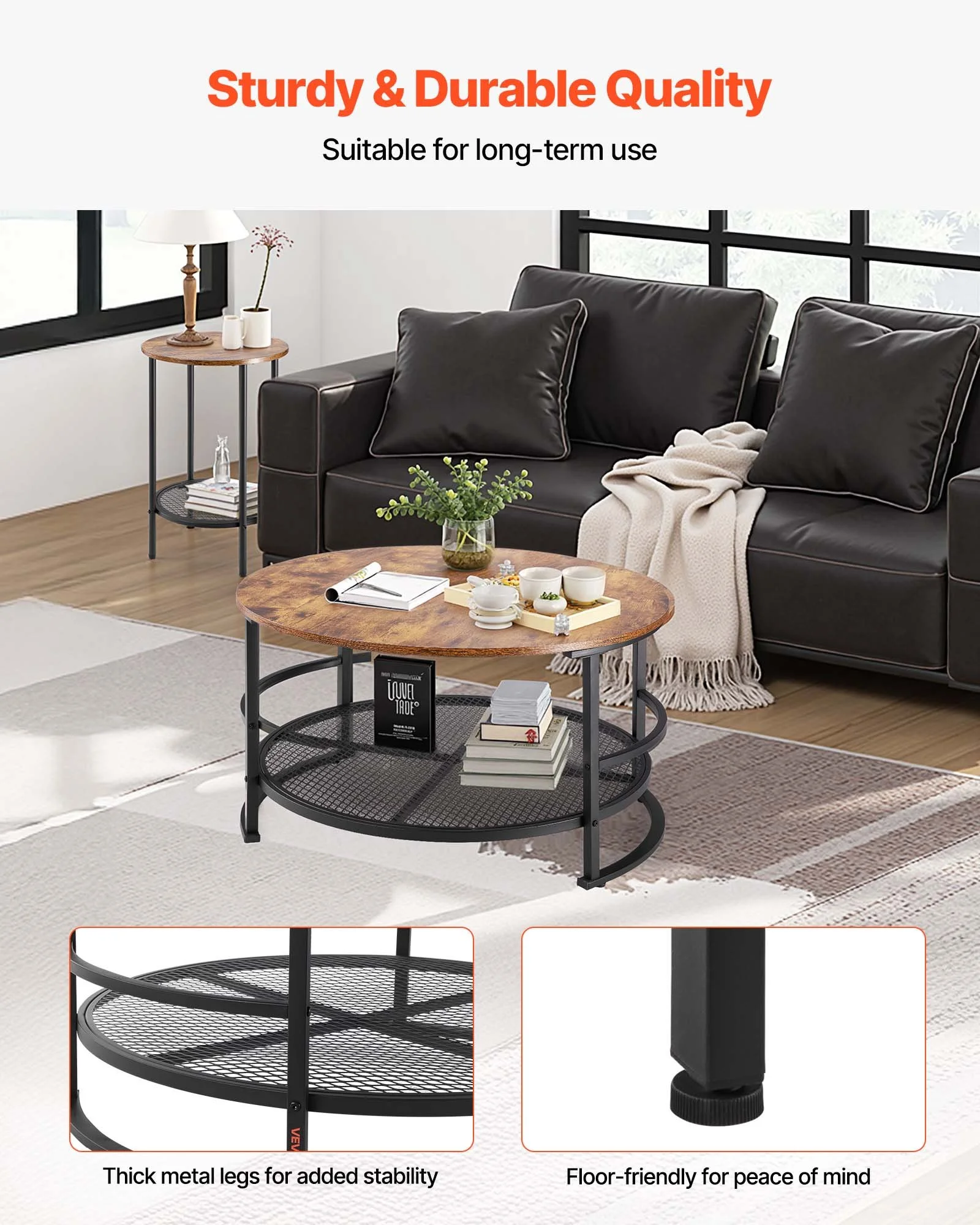 This living room table set draws inspiration from natural elements and vintage craftsmanship, featuring a classic countryside design. The wood grain on the table surface instantly adds sophistication to your living space, creating a warm and timeless atmosphere in your bedroom or living room