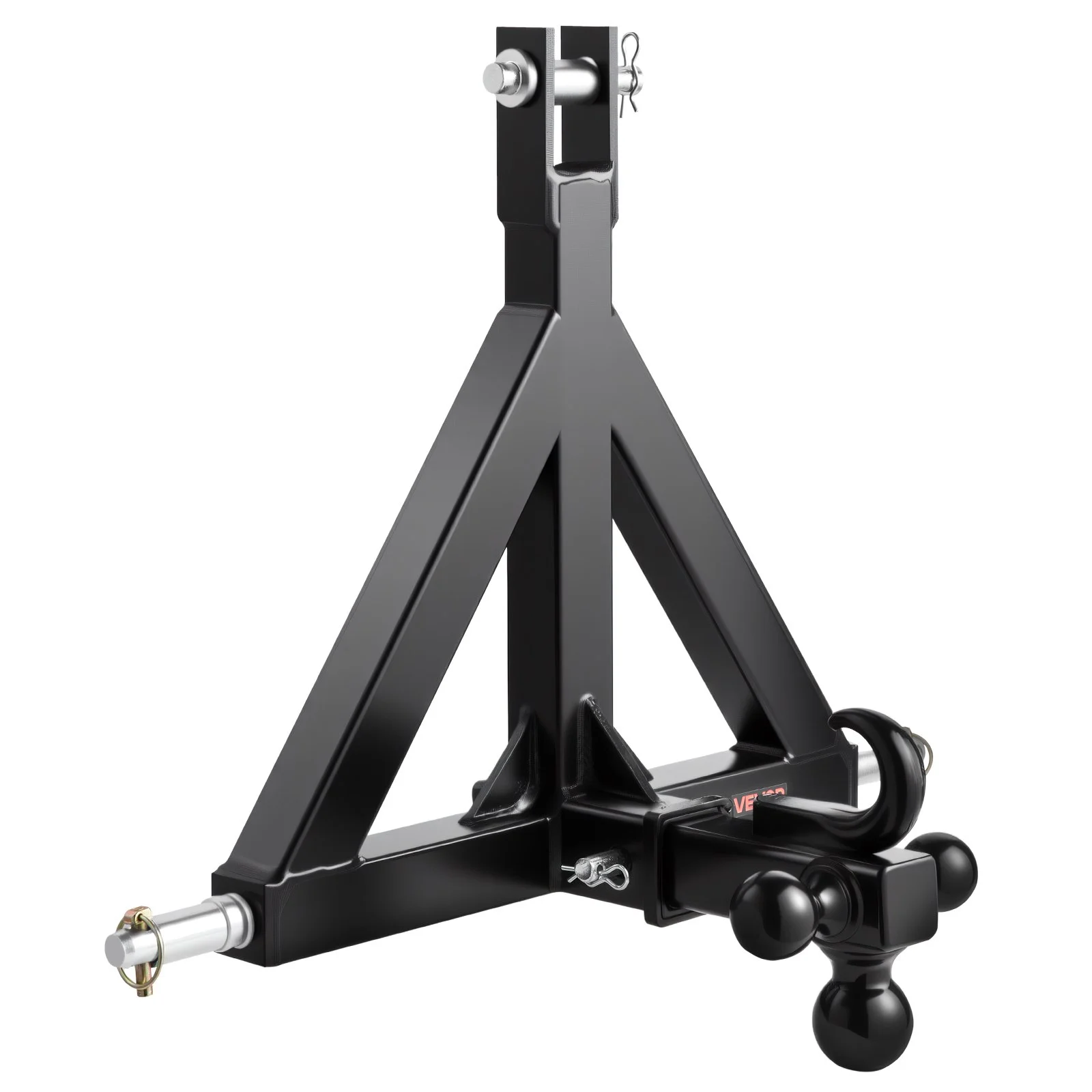The 3 point hitch receiver with four-way ball hook design is precise. With three ball weight capacities: 2,000 lbs, 6,000 lbs, and 10,000 lbs, it ensures compatibility with various 2-in hitch tractors. It easily fits compact and sub-compact models from Kubota, Mahindra, Ford, Yanmar, John Deere, Massey Ferguson, and New Holland.