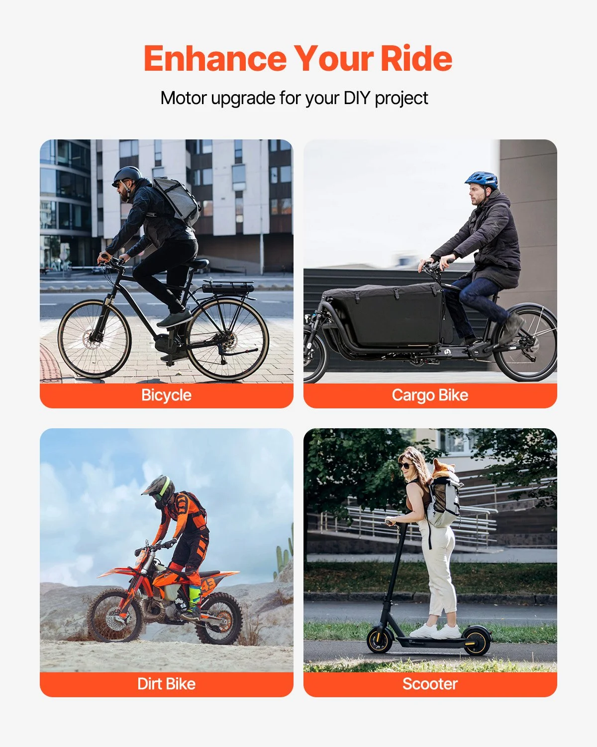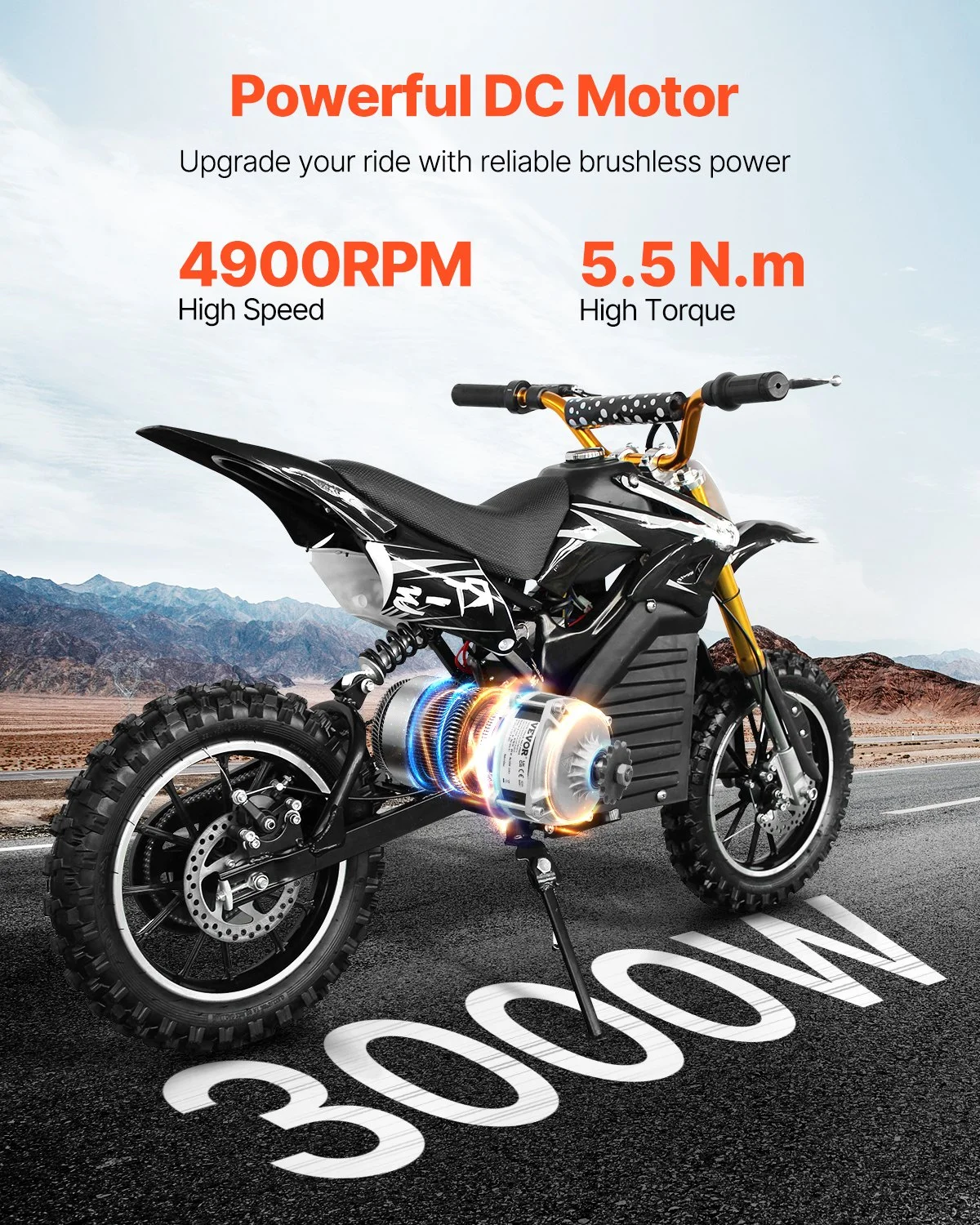 VEVOR brushless DC motor delivers 3000W of output power and operates efficiently with ≥85% conversion efficiency, ensuring reliable speed even on challenging terrains and less energy consumption. Perfect for electric bikes, scooters, and other DIY electric vehicle projects that require high performance.