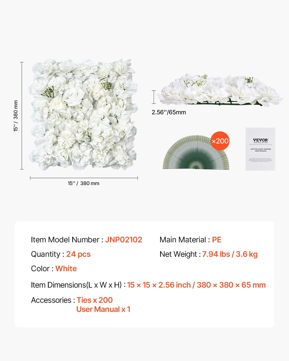 Each artificial flower wall set includes 24 panels, covering a total area of 37.5 sq. ft. Measure your space in advance to determine the required quantity and ensure the perfect fit for your desired coverage