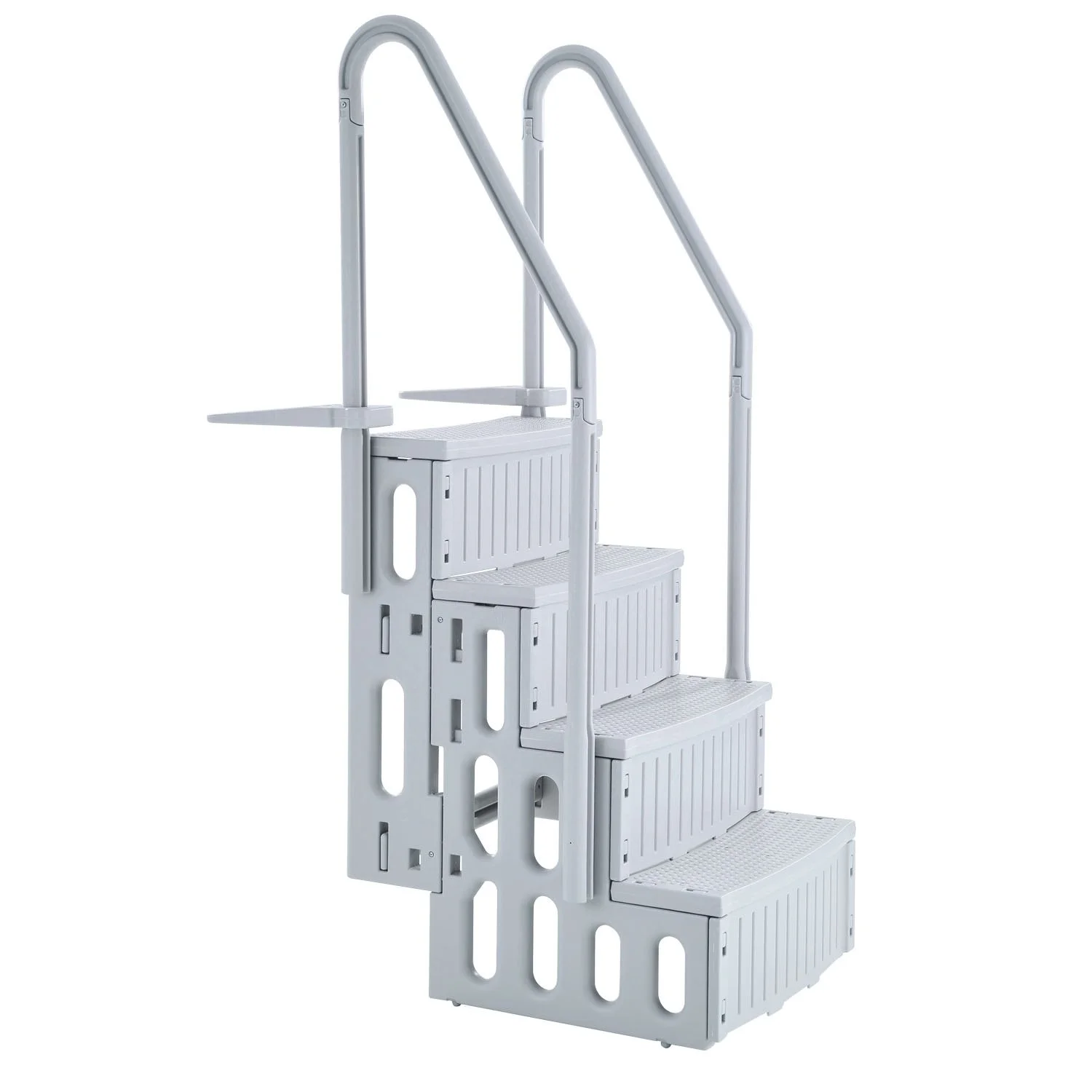With a weight capacity of up to 400 lbs, this pool stair is the first choice for both children and adults. The thickened step boards are designed with non-slip textured surfaces to ensure security with every step