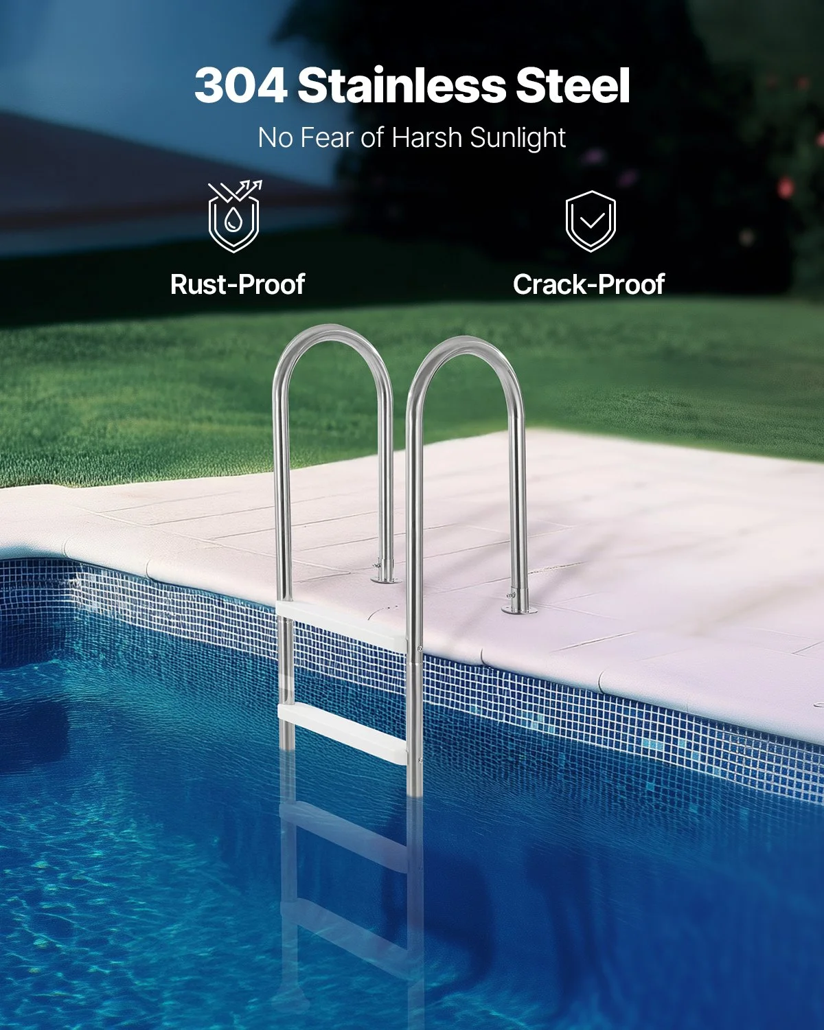 Our pool step is crafted from durable 304 stainless steel, designed to withstand waves and harsh weather. With an anodized finish, it remains fearless to sun exposure and won��t deform easily. The precise welding makes it ideal for both indoor and outdoor pools