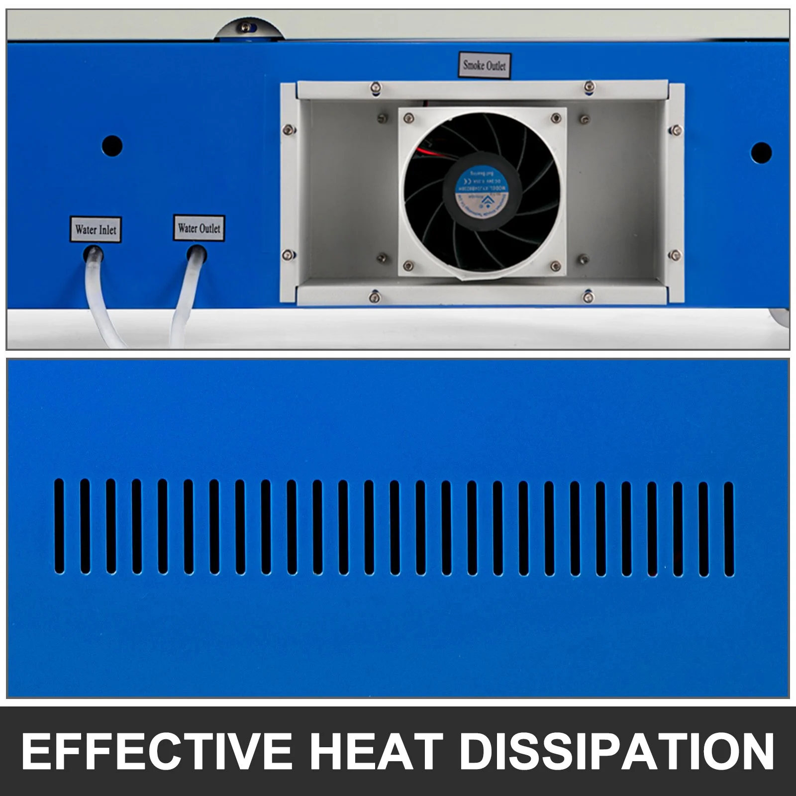 With engraving area of 12" x 8" / 30 x 20 cm. Adopts premium CO2 laser tube with lifetime of 1000-1300 hours. Features reinforced body, making the machine’s lifetime twice to three times than ordinary engravers. The built-in fan effectively reduces temperature of components for long-tern use.
