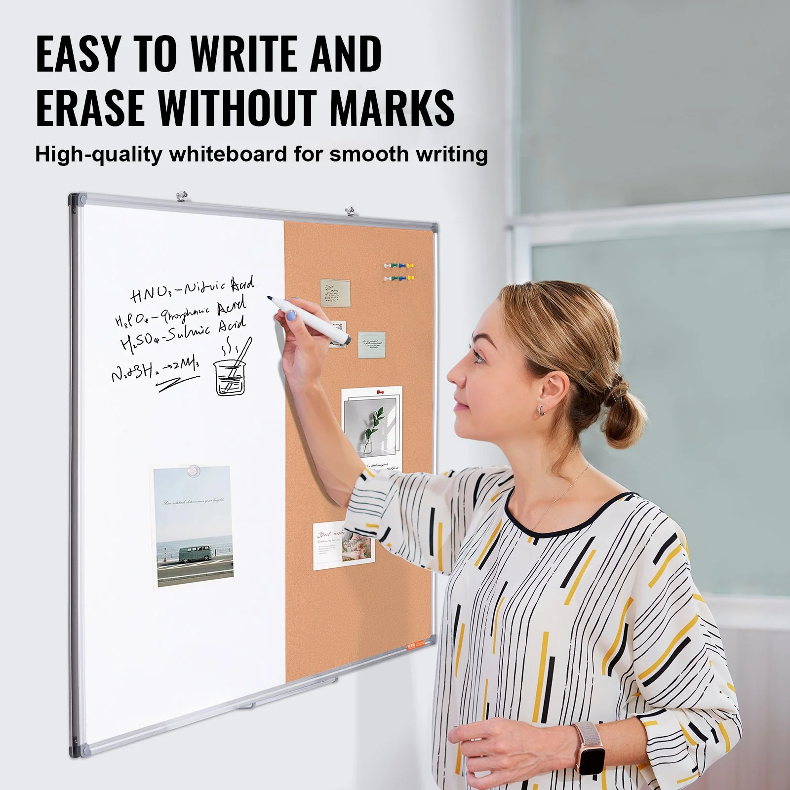 Our magnetic whiteboard has a smooth, scratch-resistant surface that works well with dry-erase markers, making writing and erasing easy. The cork area is upgraded with 7 layers of corrugated paper and a galvanized sheet, preventing bulging and keeping items securely pinned. The included dry-erase marker wipes off cleanly, and the bottom tray keeps your markers and erasers handy, saving time.